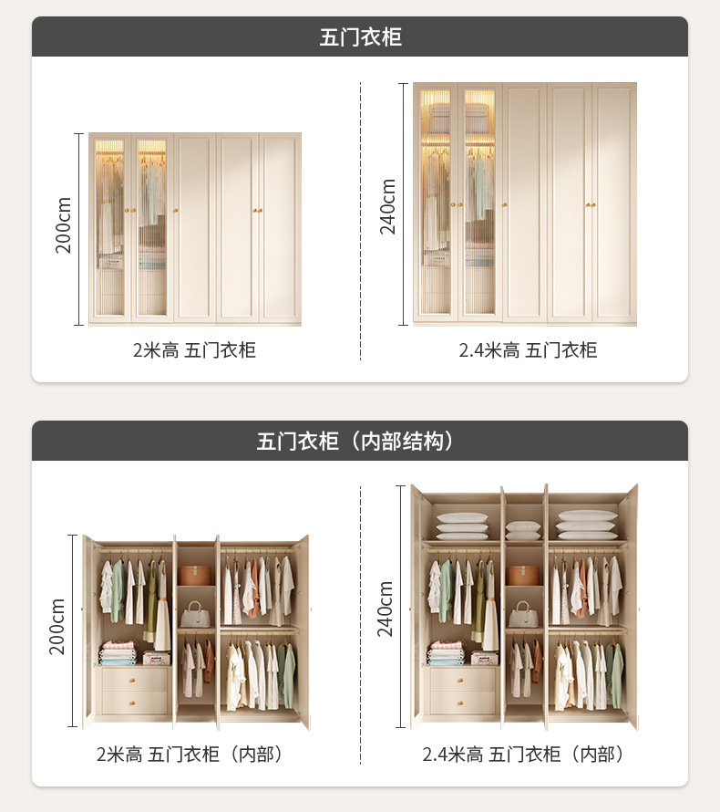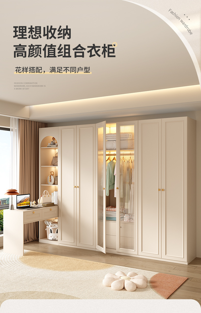 프랑스 크림 스타일 옷장 작은 아파트 가구 캐비닛 현대 간단한 침실 최고 저장 캐비닛 빛 고급 대형 옷장