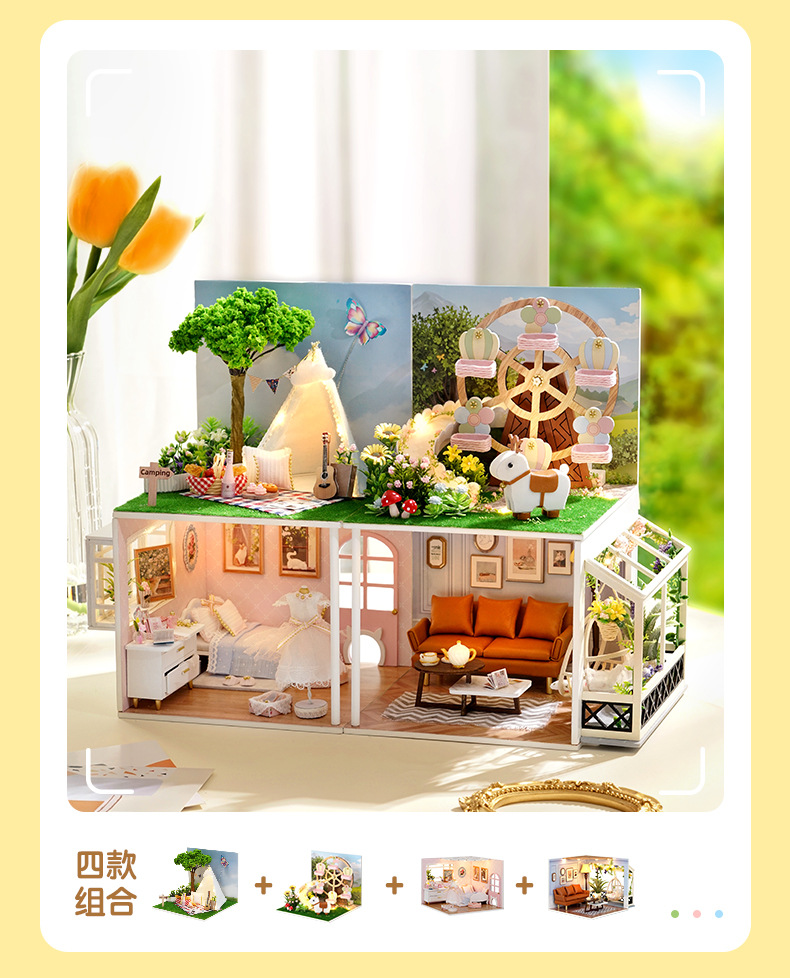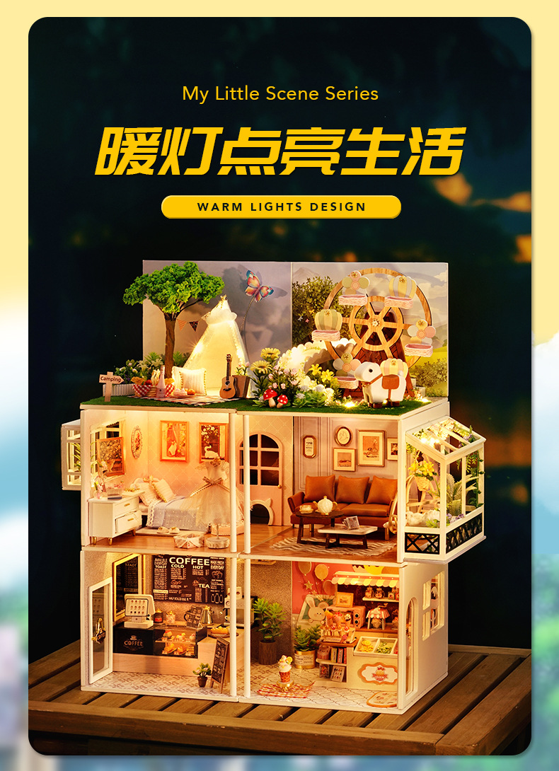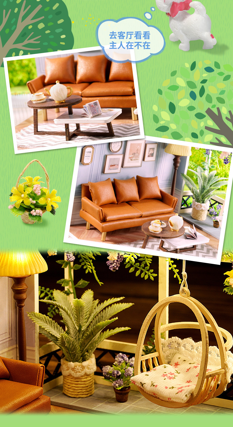 Zhiquwu diy 캐빈 내 작은 장면 미니어처 3d 입체 빌딩 모델 조합 하우스 크리 에이 티브 선물