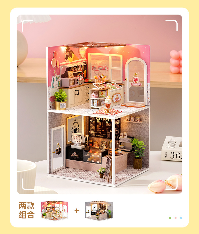 Zhiquwu diy 캐빈 내 작은 장면 미니어처 3d 입체 빌딩 모델 조합 하우스 크리 에이 티브 선물스토어 가기