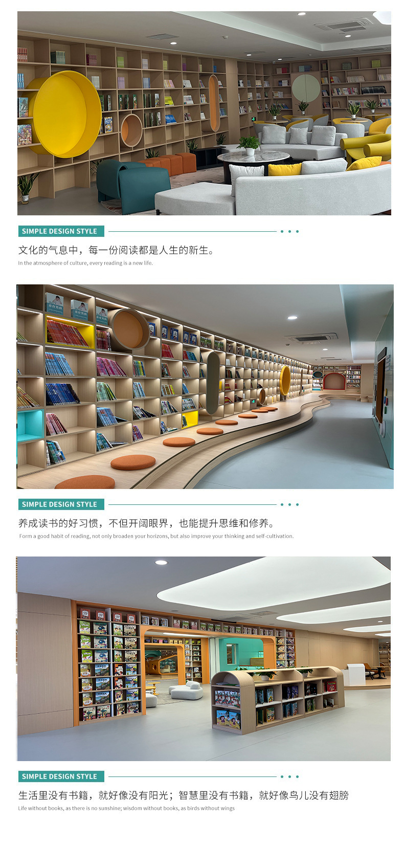 현대적인 단순하고 고급 목재 도서 보관 책장 특별한 모양의 맞춤형 유치원 서점 독서 어린이 책장