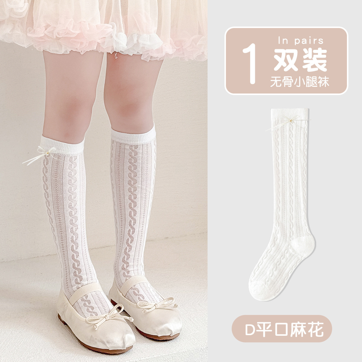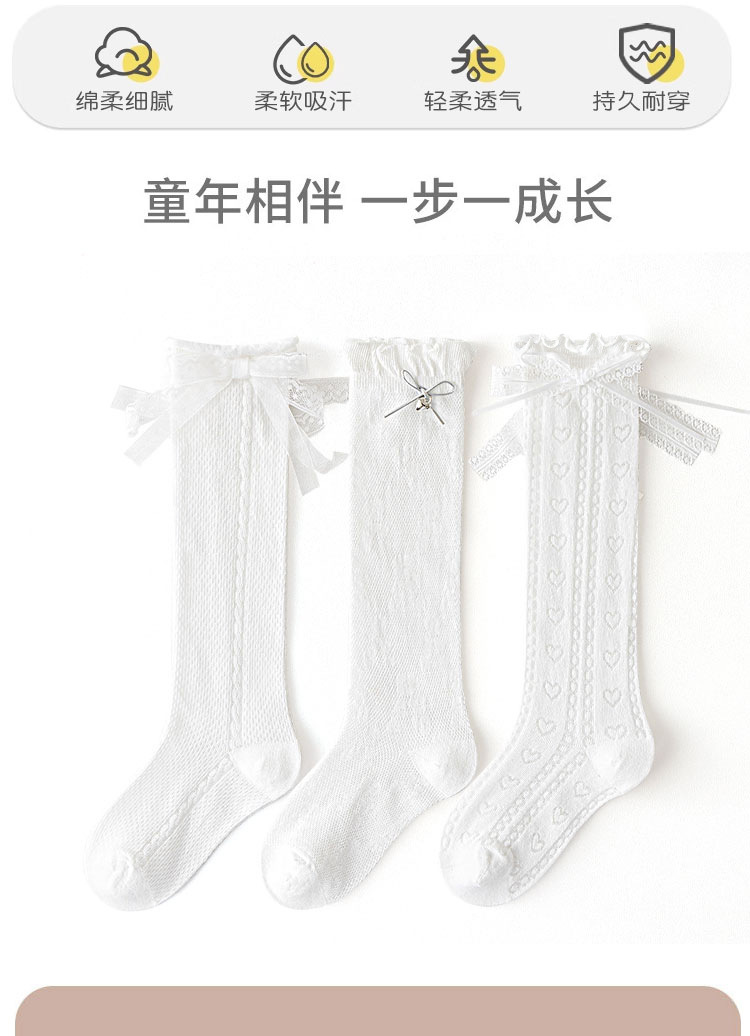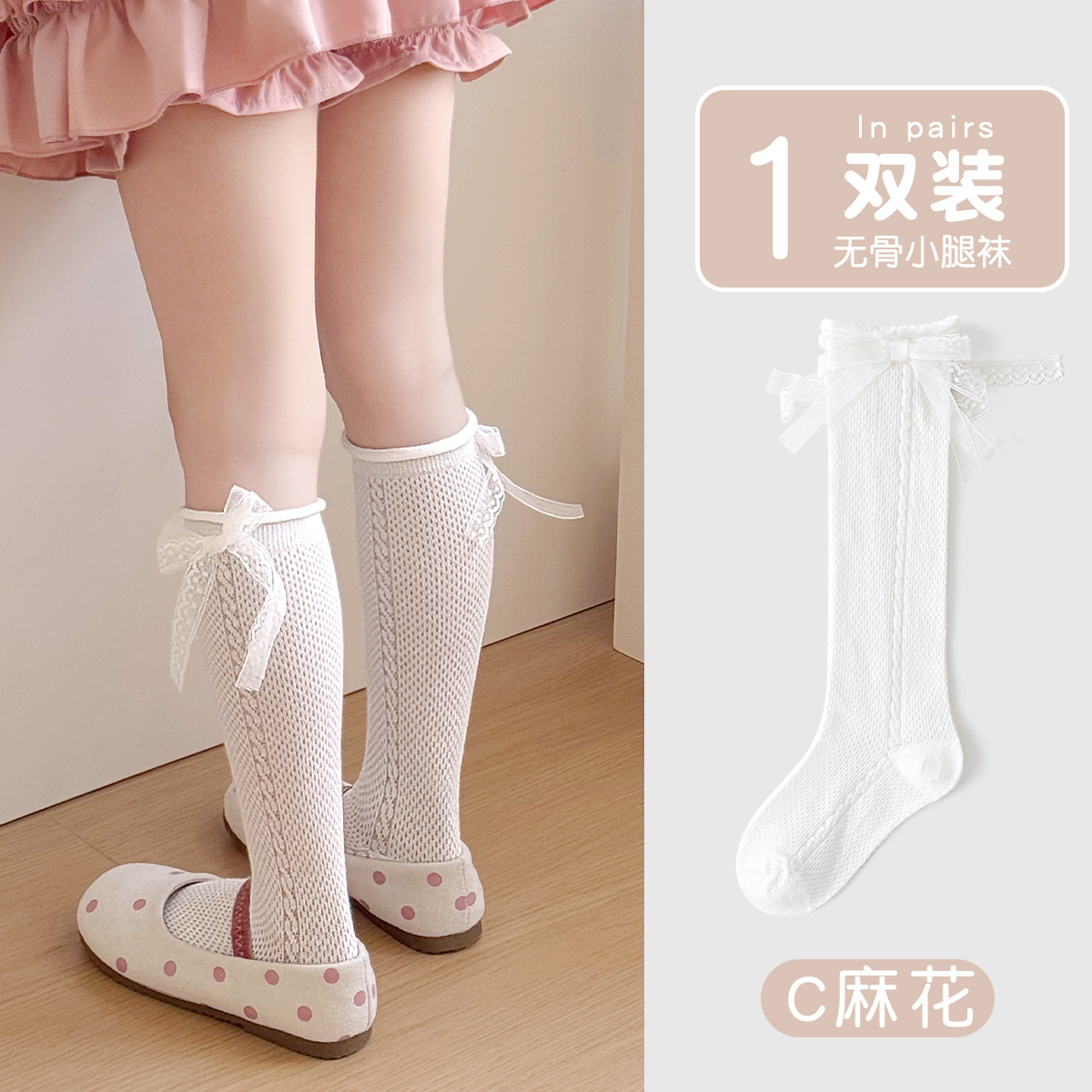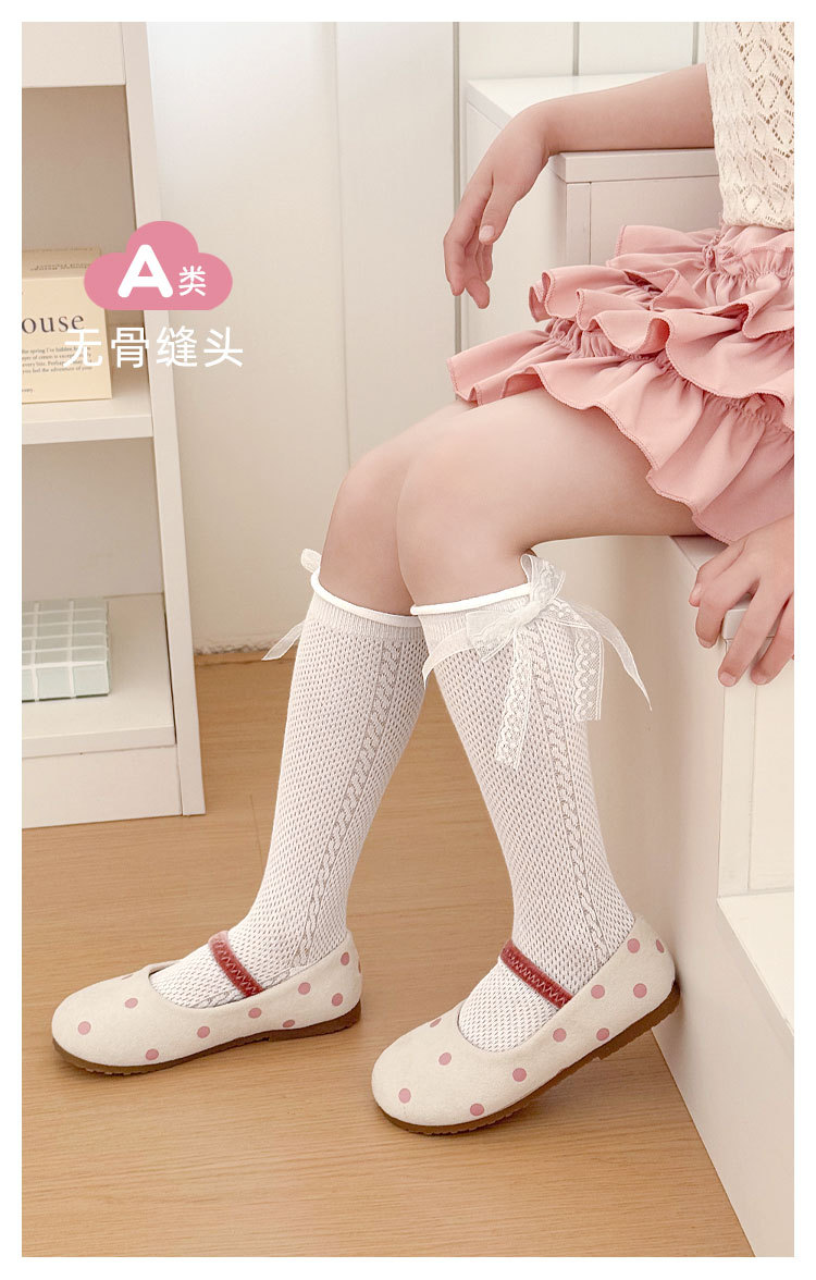 소녀 양말 흰 활 공주 양말 어린이 긴 튜브 여름 얇은 뼈없는 빗질면 종아리 양말
