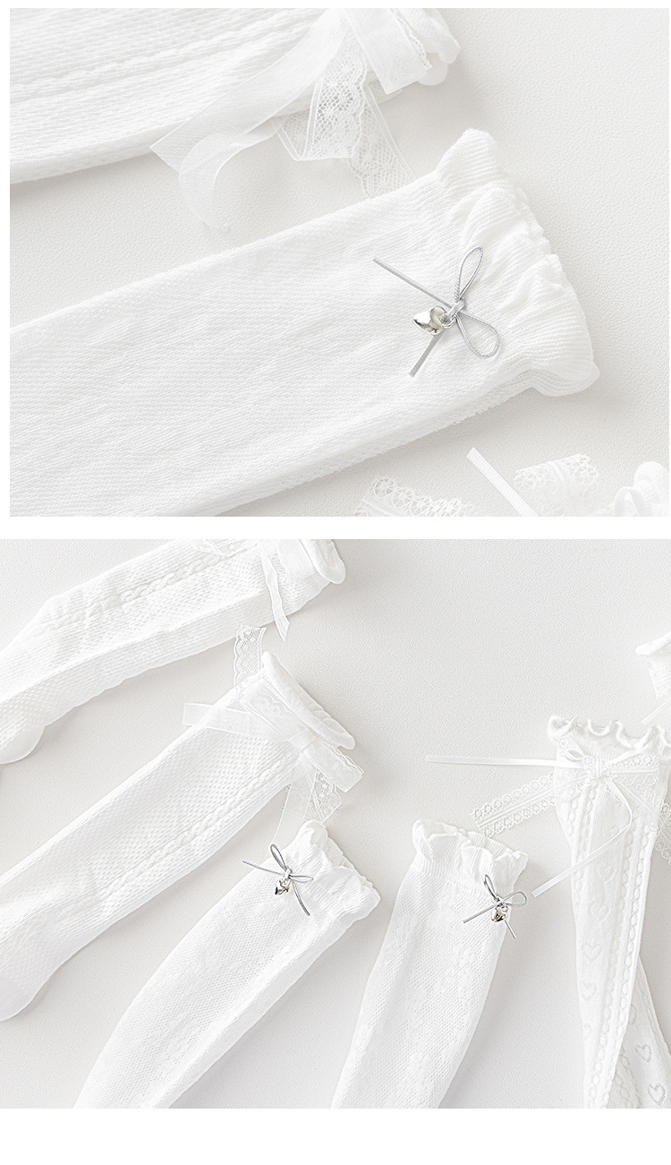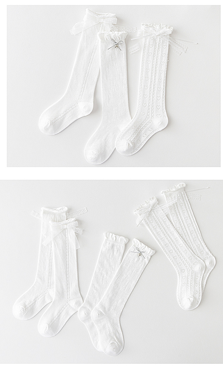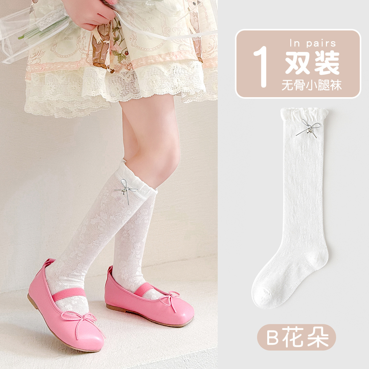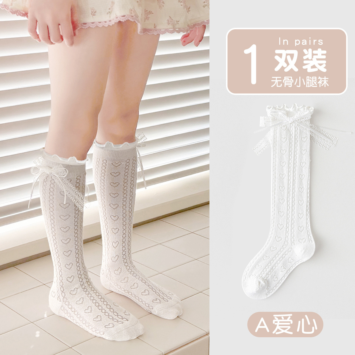 소녀 양말 흰 활 공주 양말 어린이 긴 튜브 여름 얇은 뼈없는 빗질면 종아리 양말