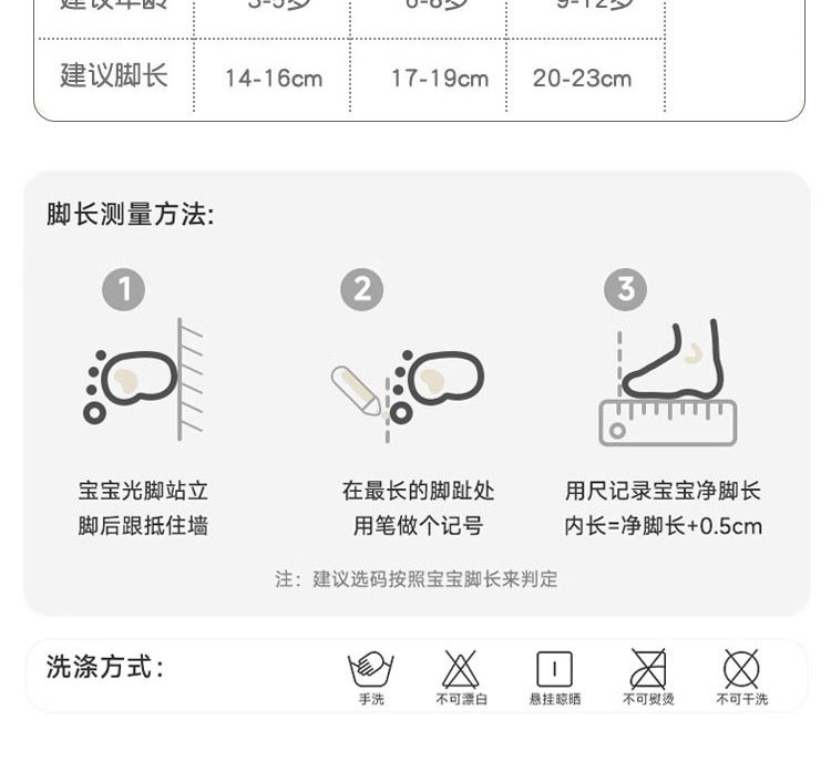 • M 사이즈 (권장 발 길이 14-16CM, 신발 사이즈 25-28)