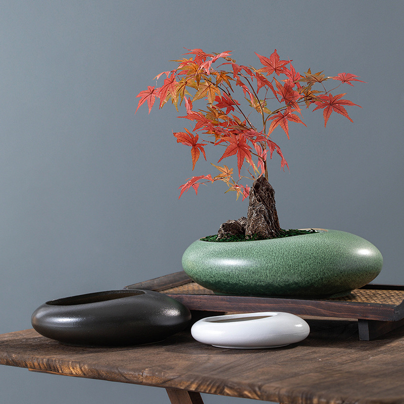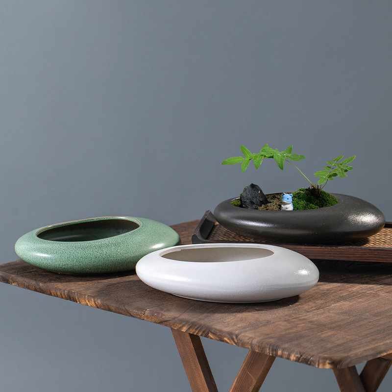 공장 부드러운 장식 세라믹 흑백 매트 돌 꽃 예술 대나무 풍경 분재 꽃 냄비 간단한