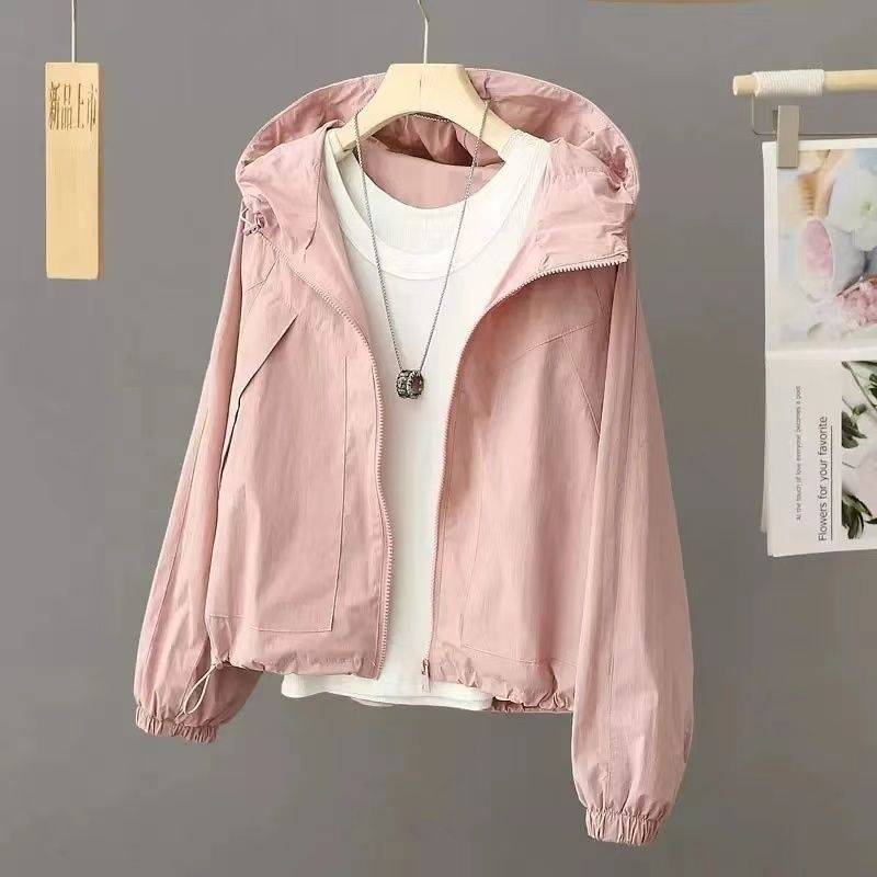 여성을위한 밝은 색상의 자외선 차단 재킷 2025 봄, 여름 새로운 유럽 스타일 재킷 캐주얼 짧은 윈드 브레이커 재킷 탑