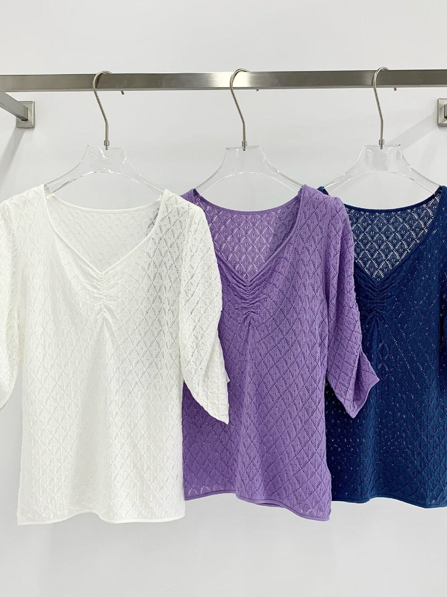 고품질 2025 새로운 여름 얇은 랜턴 슬리브 풀오버 중공 핑크 스웨터 탑 여성용