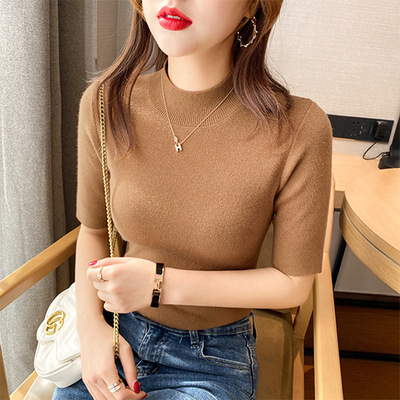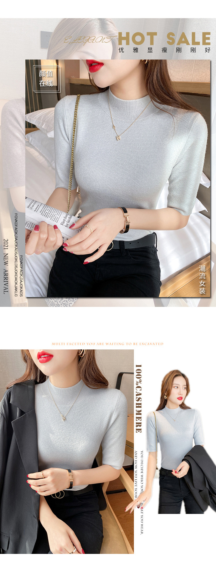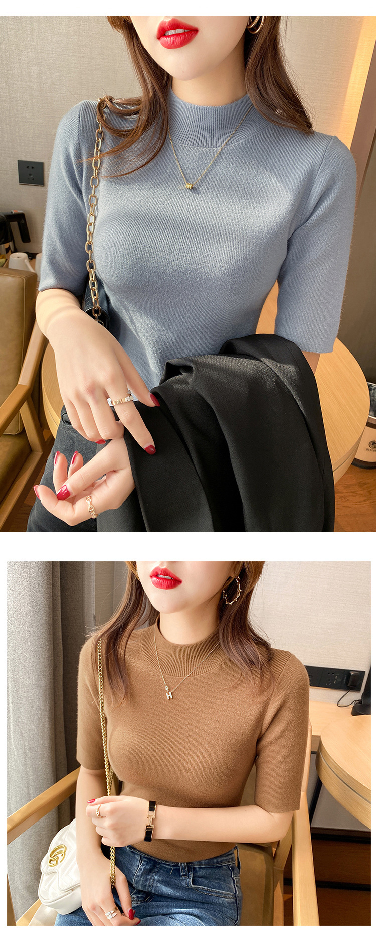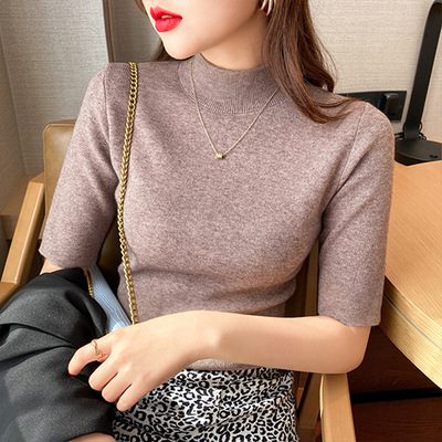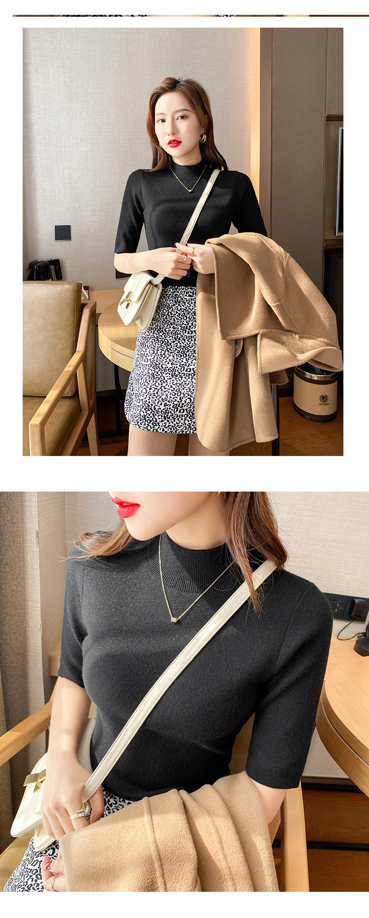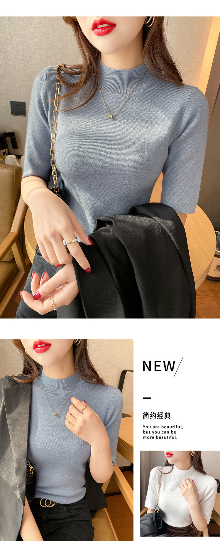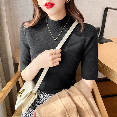 하프 터틀넥 스웨터 여성 긴팔 니트 바닥 셔츠 봄, 가을, 겨울 새로운 스타일 중간 소매 슬림핏 이너웨어 외국 스타일 탑