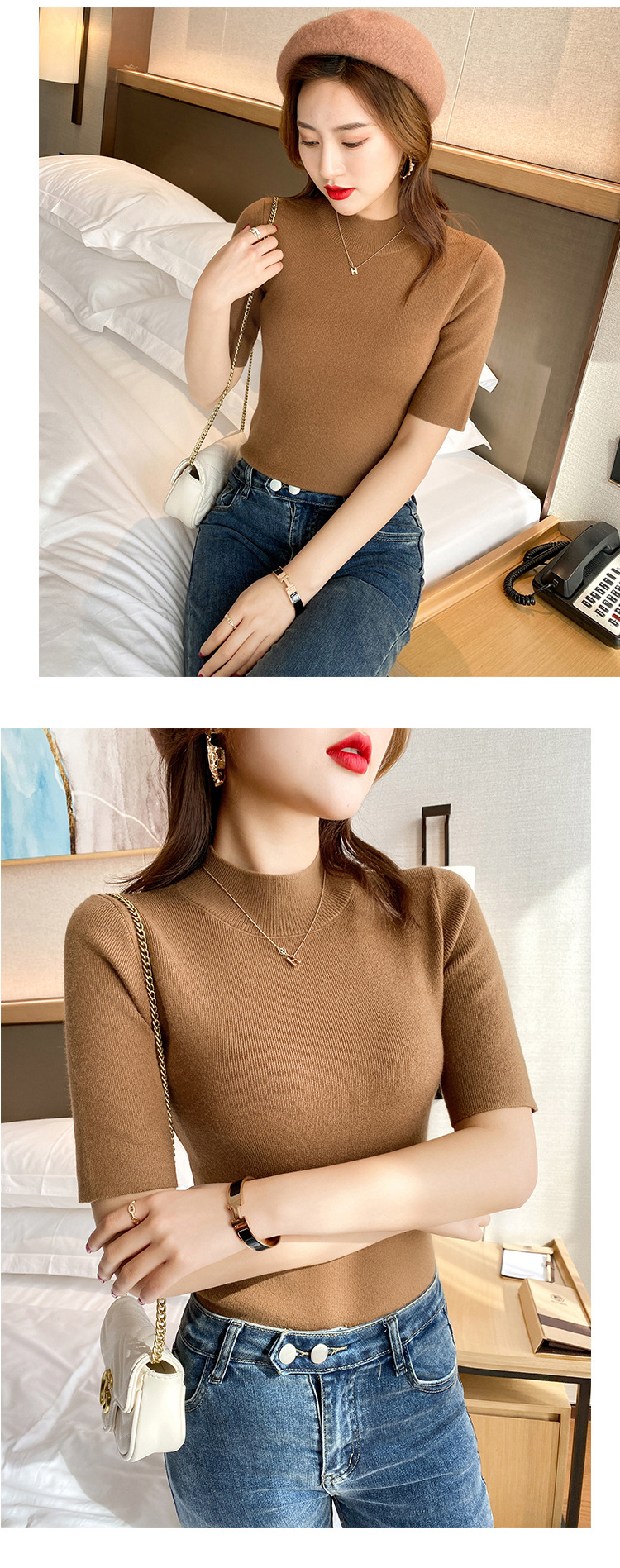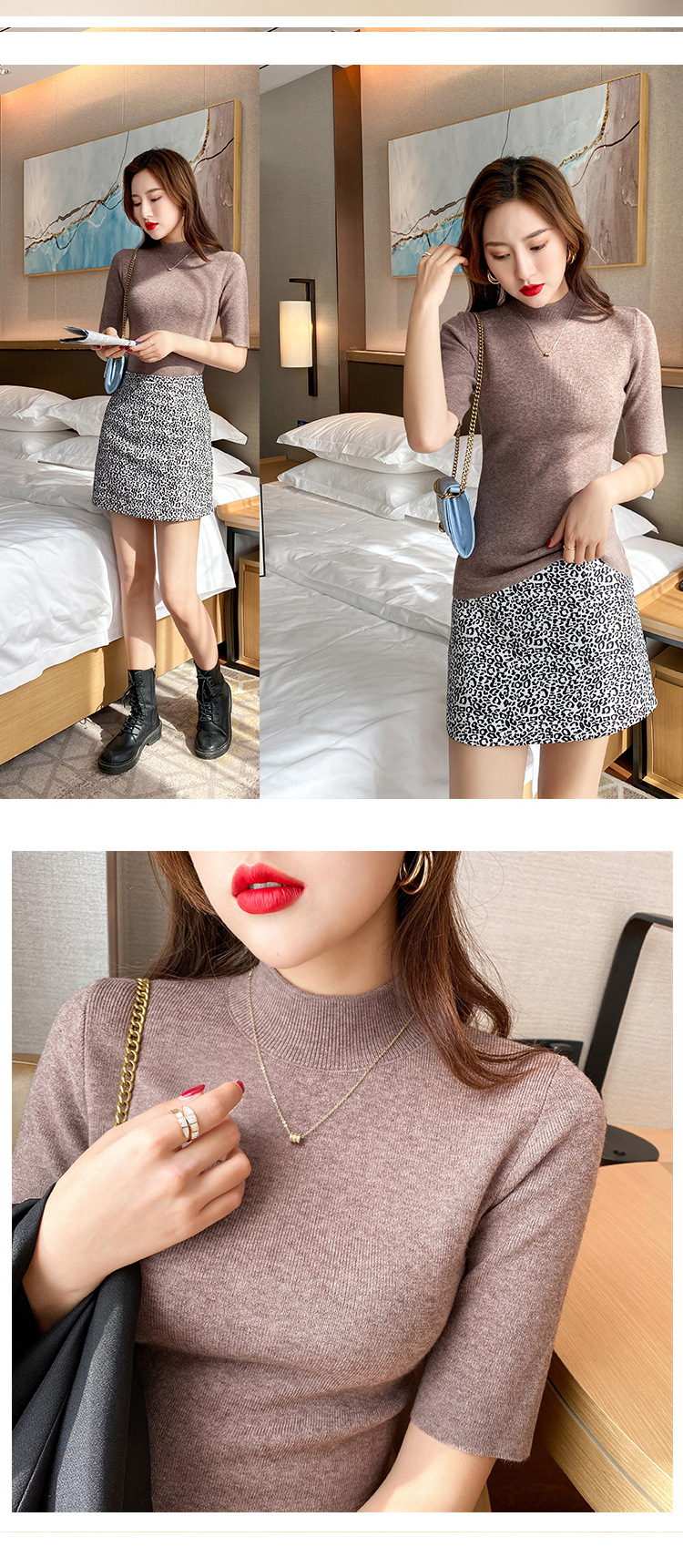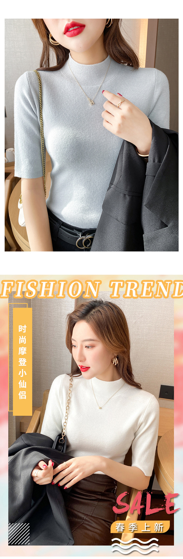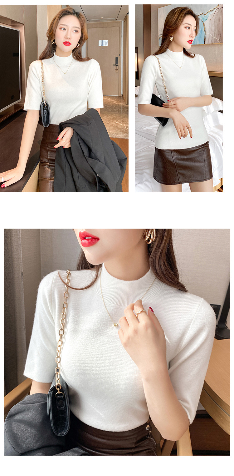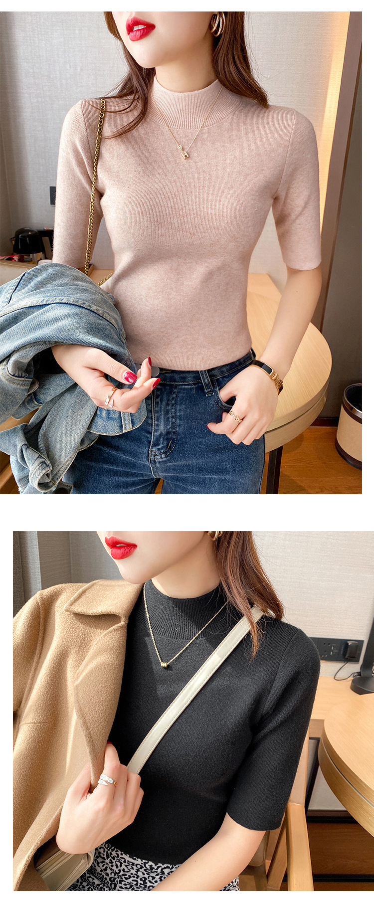 하프 터틀넥 스웨터 여성 긴팔 니트 바닥 셔츠 봄, 가을, 겨울 새로운 스타일 중간 소매 슬림핏 이너웨어 외국 스타일 탑스토어 가기