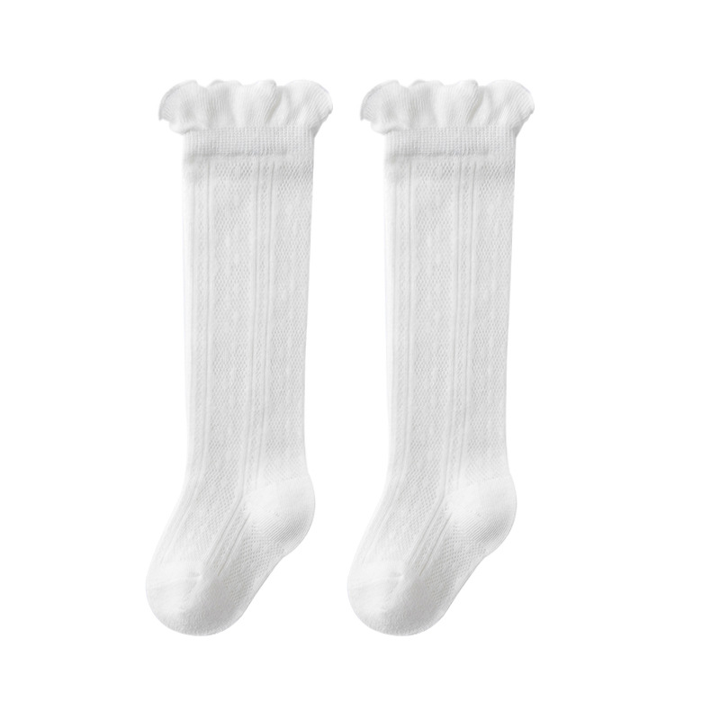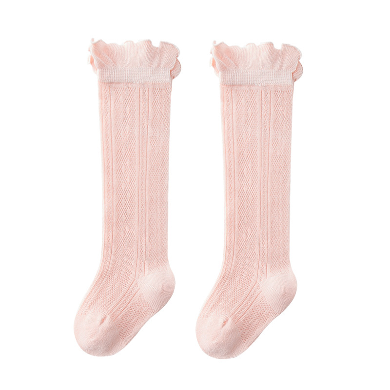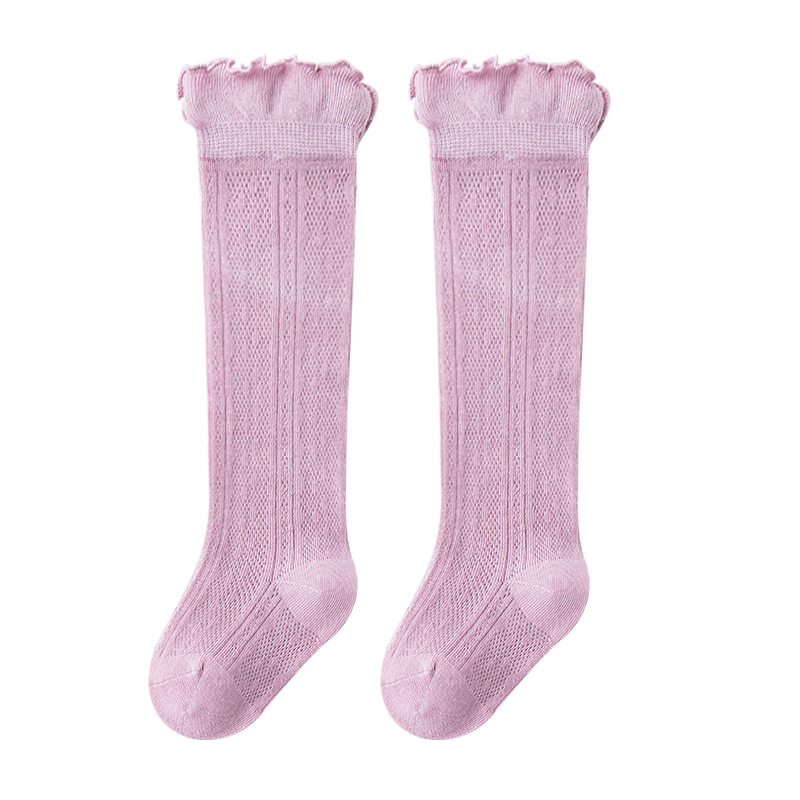 길고 높은 아기 양말 여름 메쉬 높은 양말 솔리드 컬러 아기면 스타킹 다리가없는 모기 방지 양말