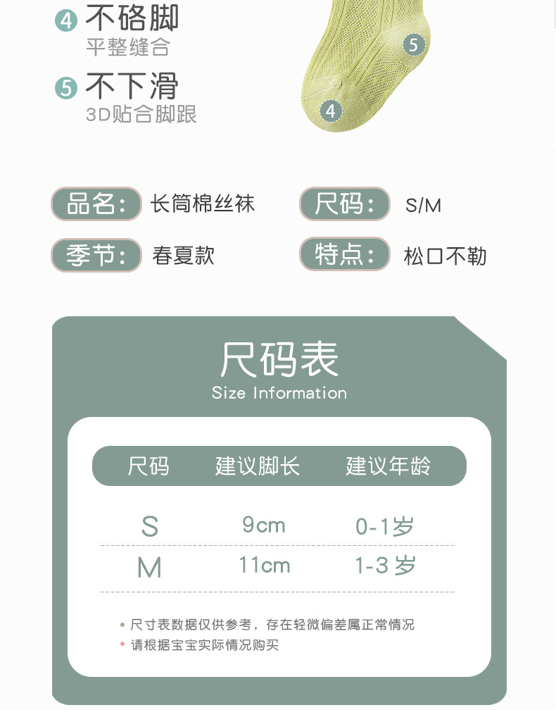 길고 높은 아기 양말 여름 메쉬 높은 양말 솔리드 컬러 아기면 스타킹 다리가없는 모기 방지 양말스토어 가기