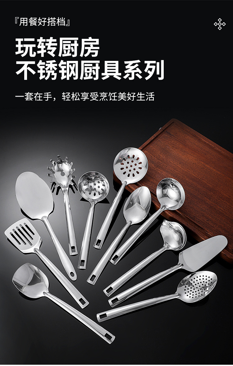 스테인리스 주방 도구 세트 11종 사각 손잡이 국자, 체망, 전골용 숟가락 일상용스토어 가기