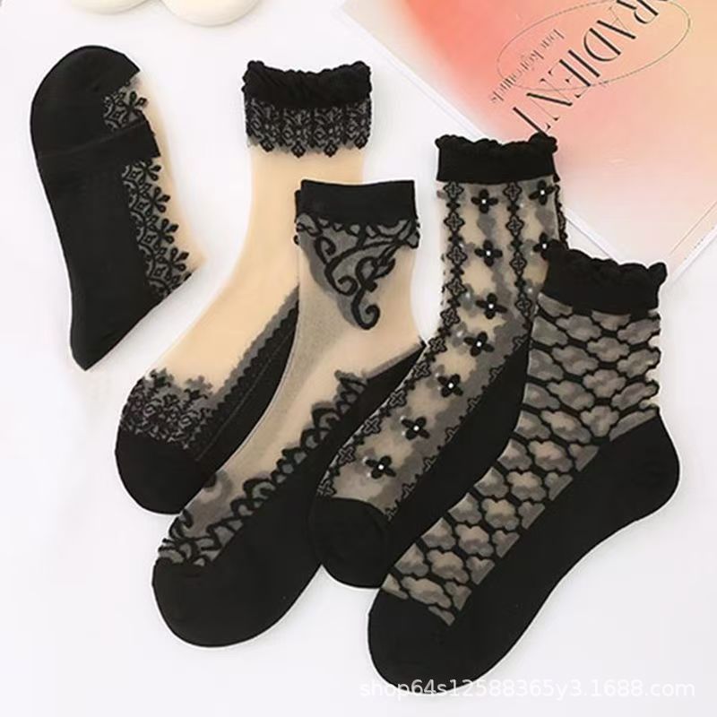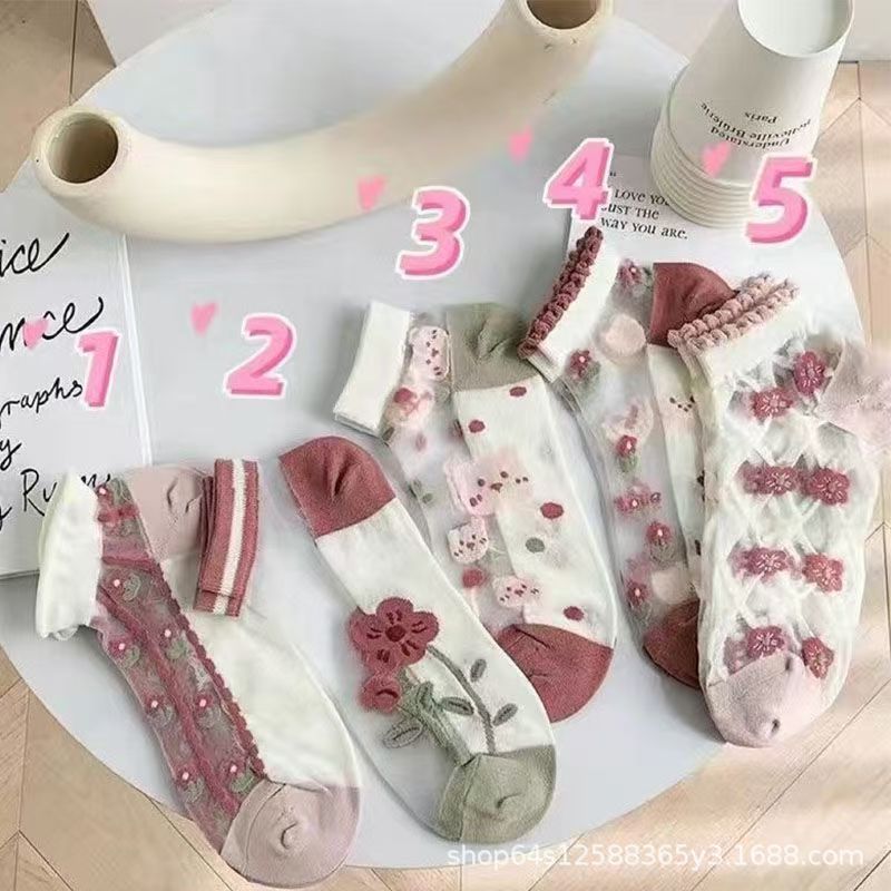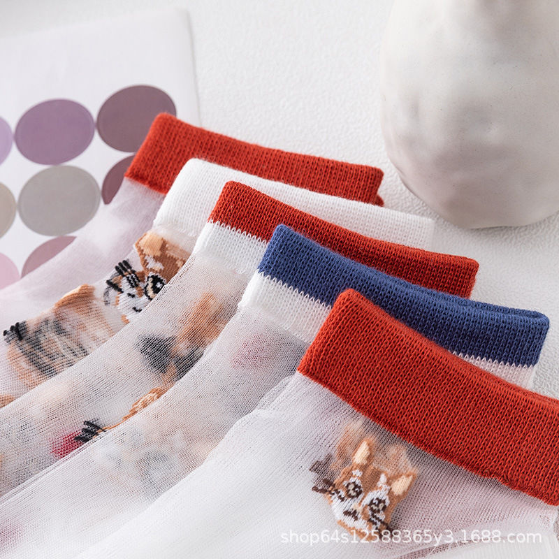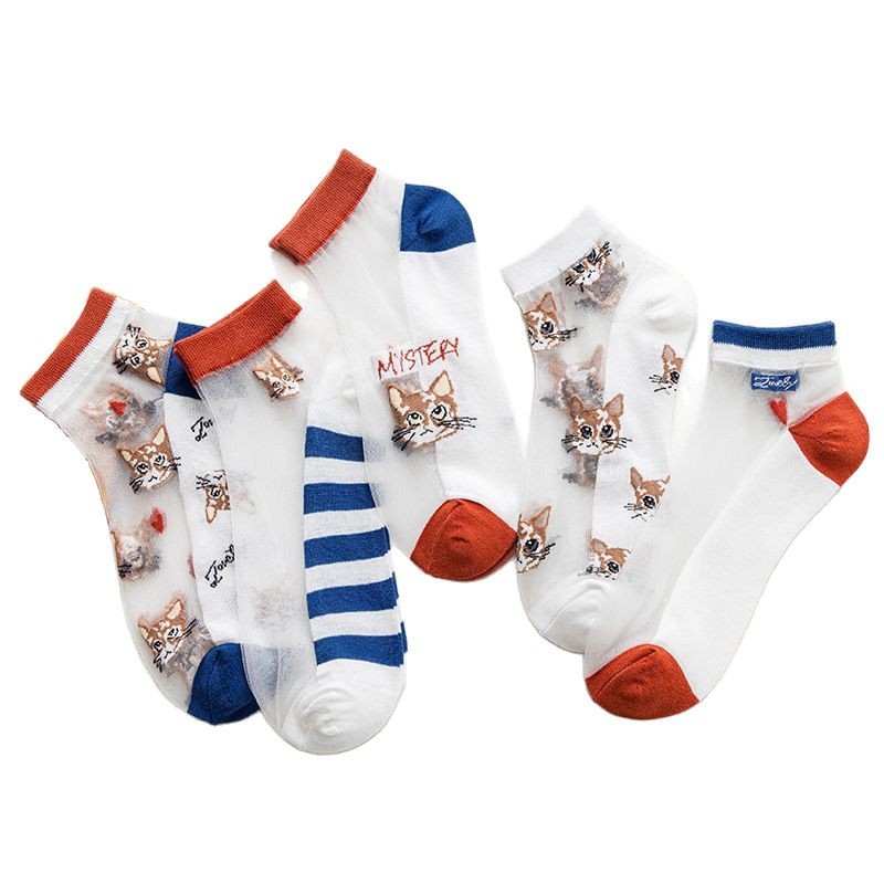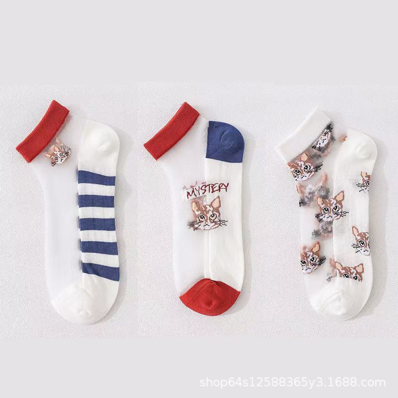 여성을위한 새로운 여름 얇은 유리 실크 양말 트렌디 한 다목적 귀여운 만화 새끼 고양이 짧은 양말