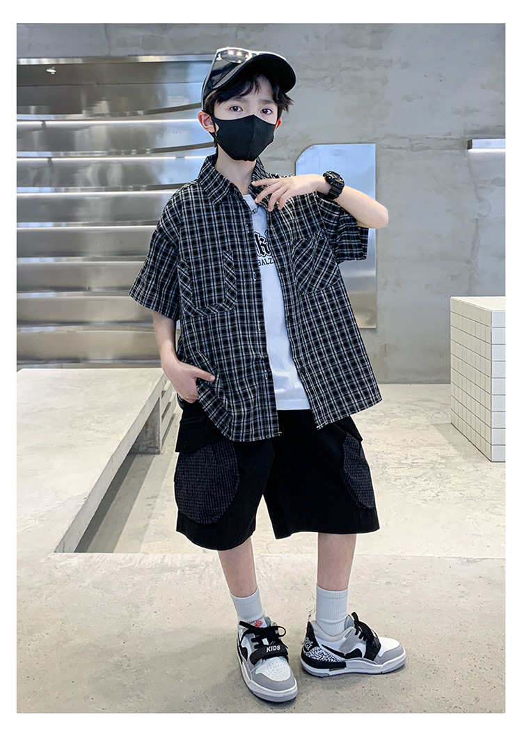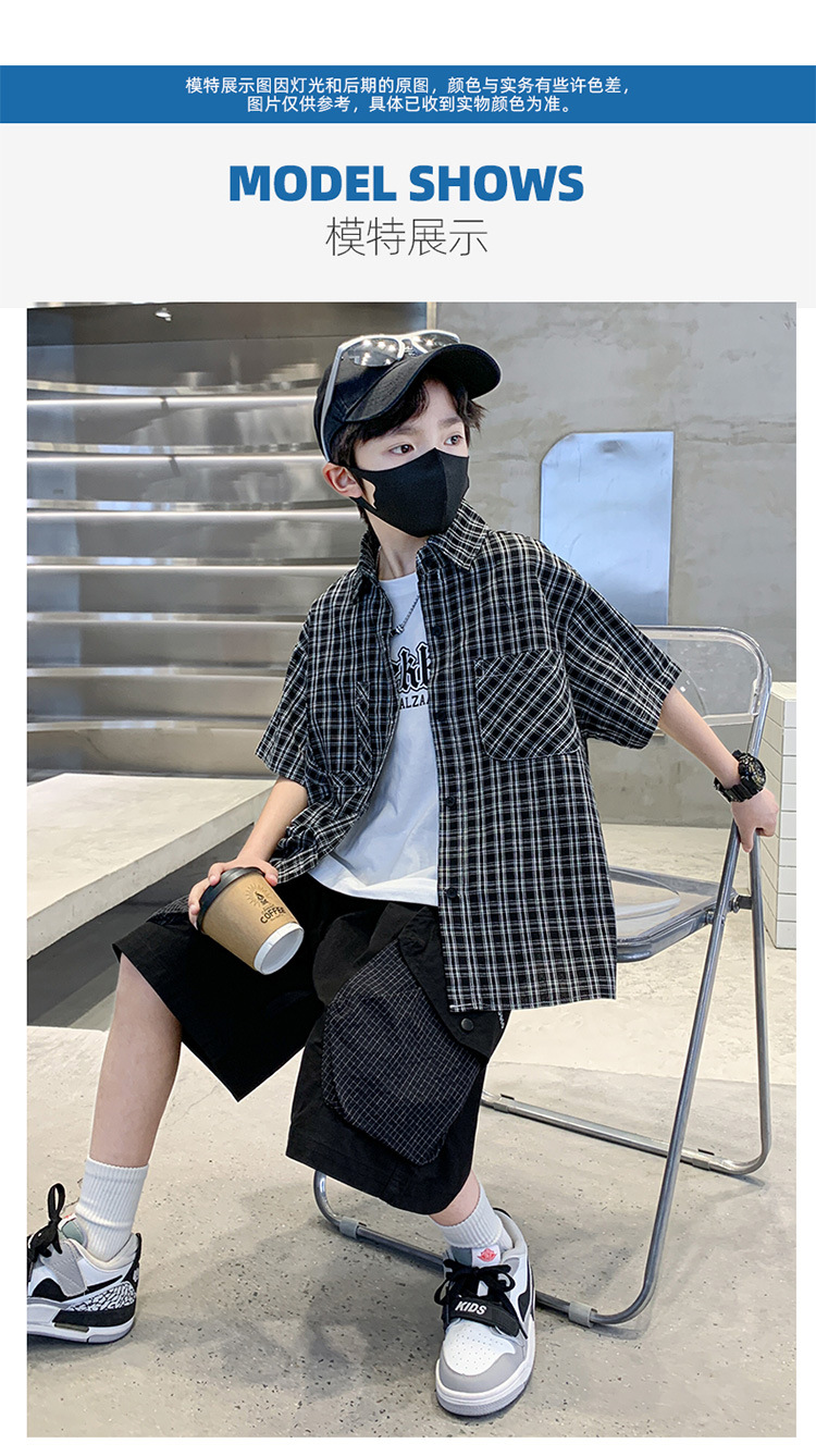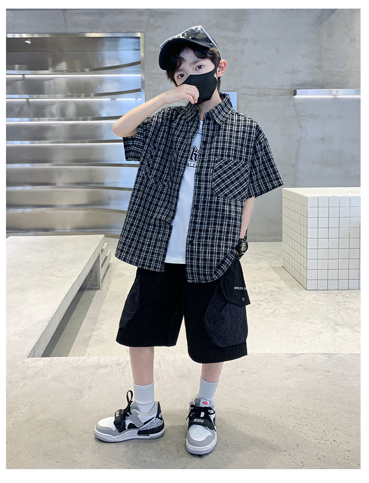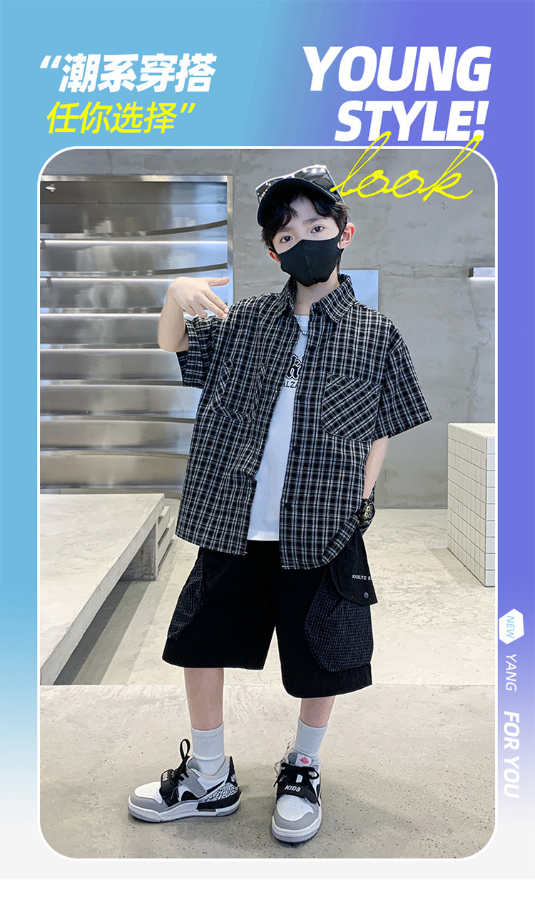 남학생 여름 의류 세트 2025 새 어린이 소년 중 · 대형 어린이 여름 캐주얼 셔츠 반팔 셔츠 3 종 세트스토어 가기