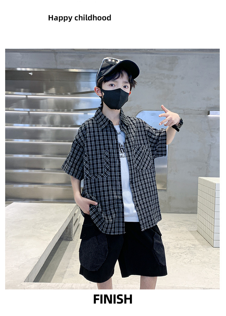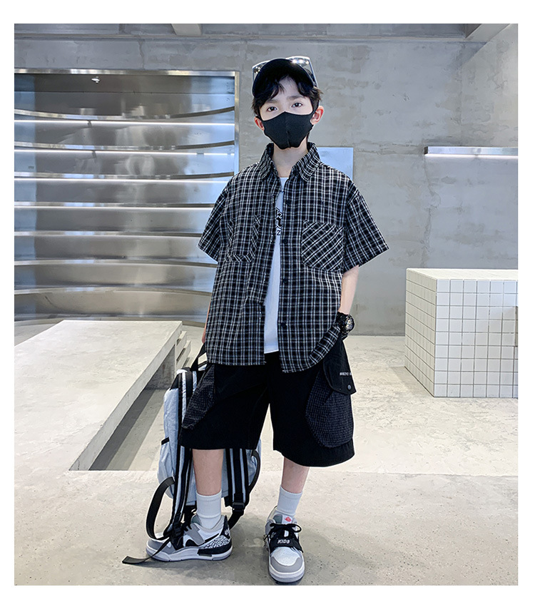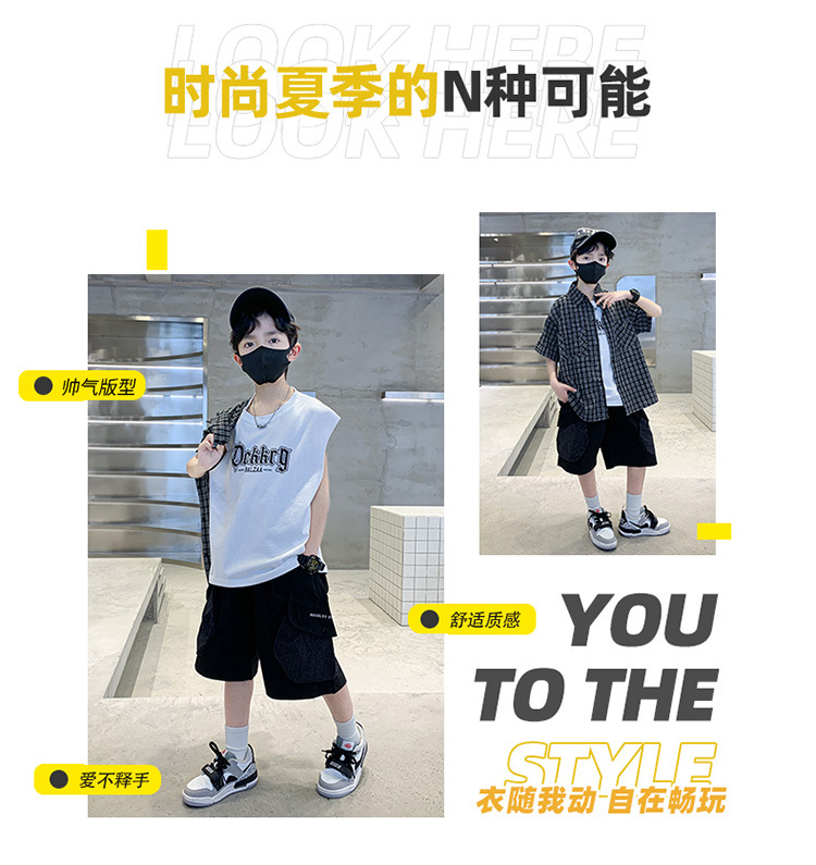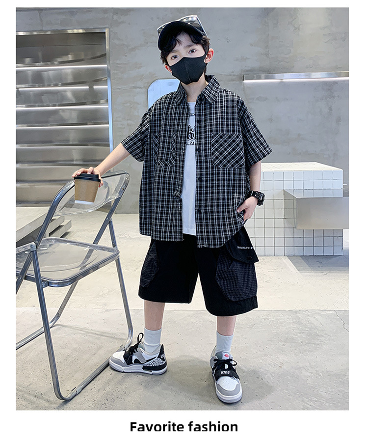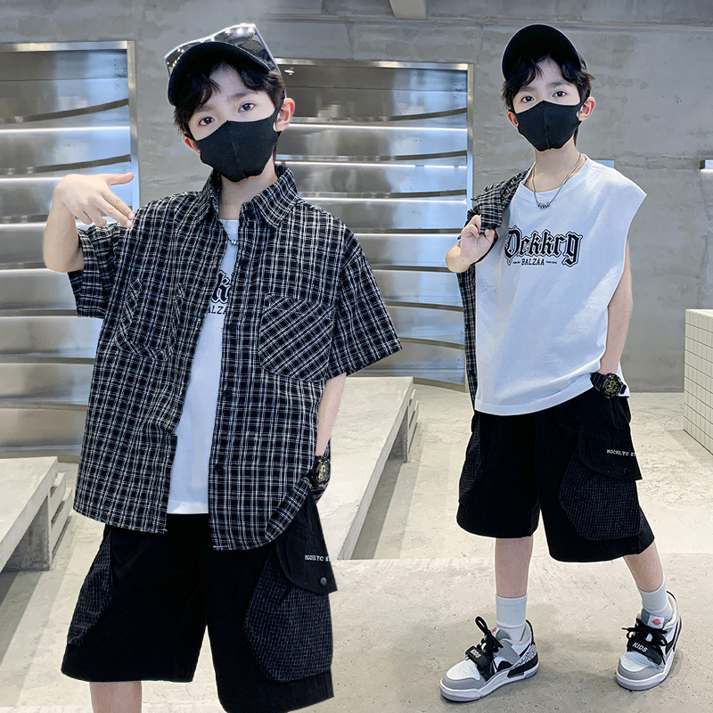 남학생 여름 의류 세트 2025 새 어린이 소년 중 · 대형 어린이 여름 캐주얼 셔츠 반팔 셔츠 3 종 세트스토어 가기