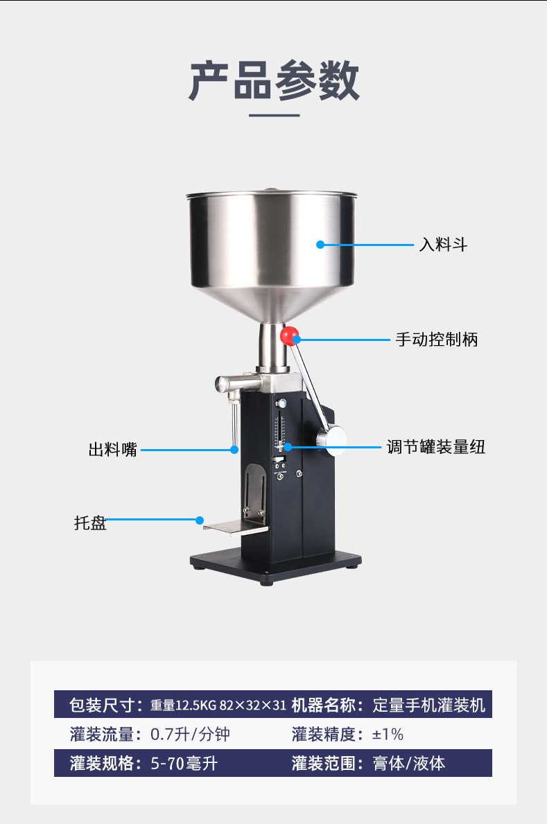 A03 수동 충전 기계 소형 핸드 프레스 정량 페이스트 액체 요구르트 참깨 소스 에센셜 오일 꿀 샴푸 및 샤워 로션