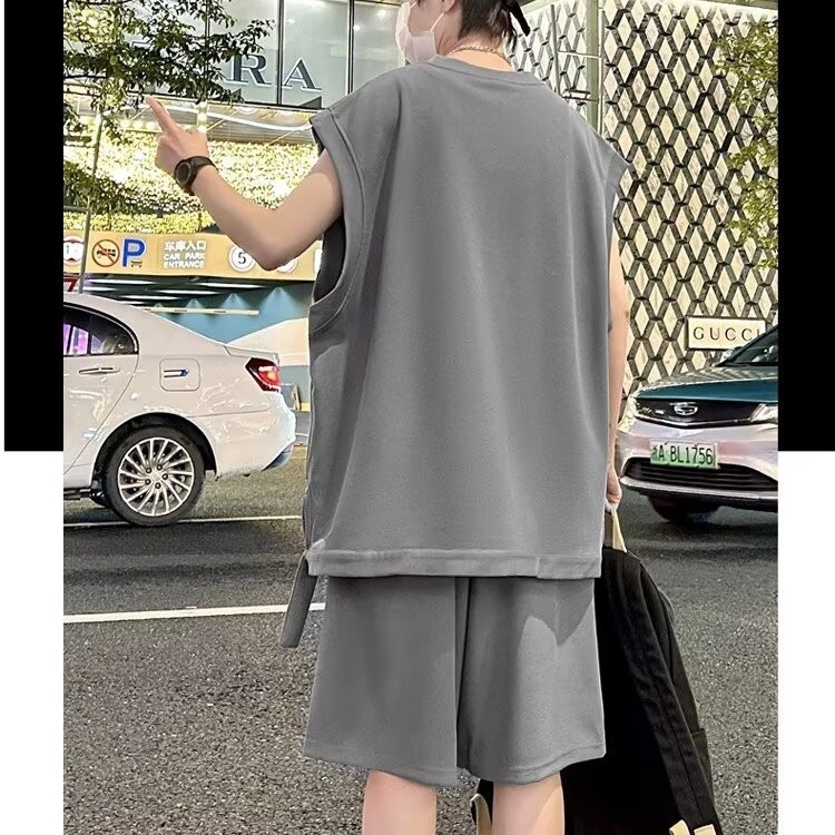 2025 플러스 사이즈 8XL 150.00kg 은 국경 간 대외 무역 레저 스포츠를 입을 수 세트 여름 조끼 남성은 민소매 셔츠를 입습니다.