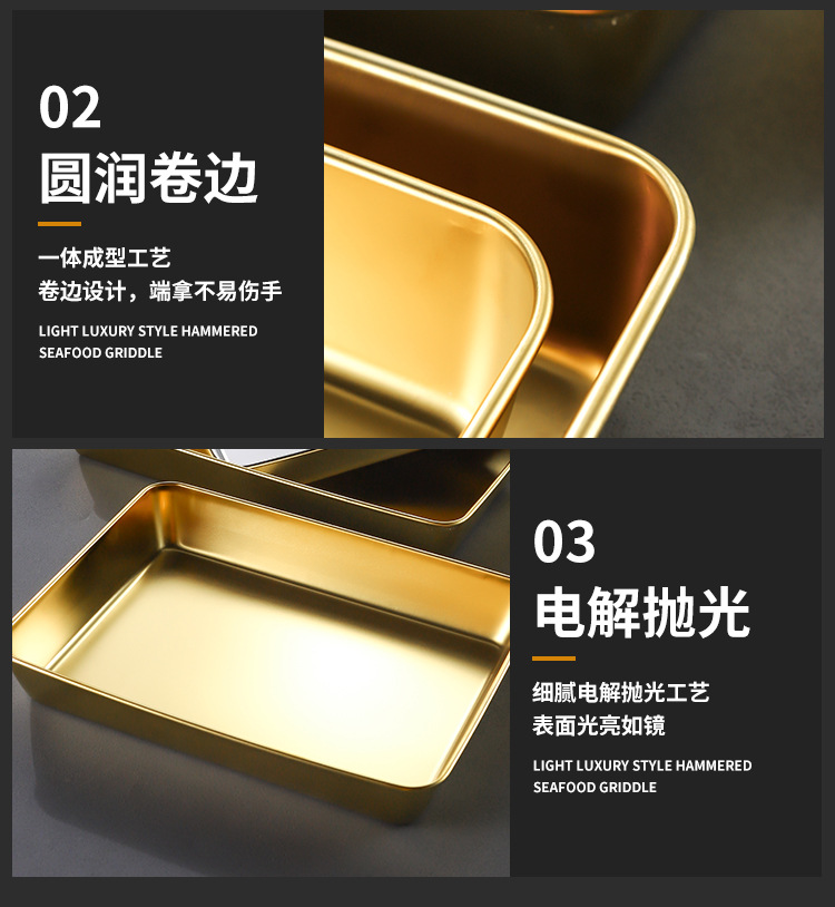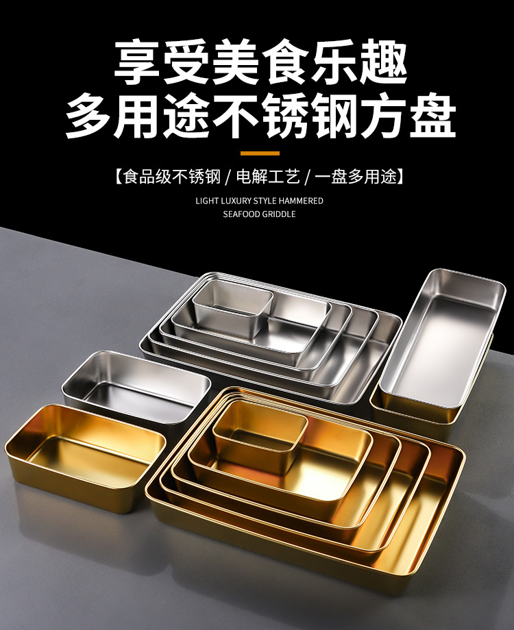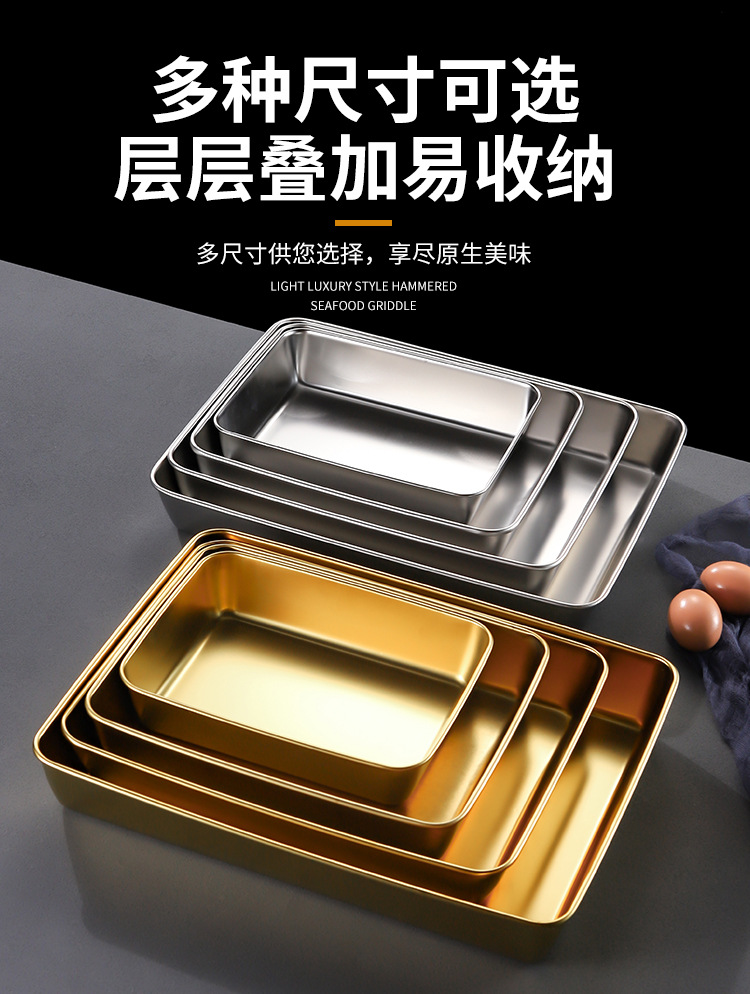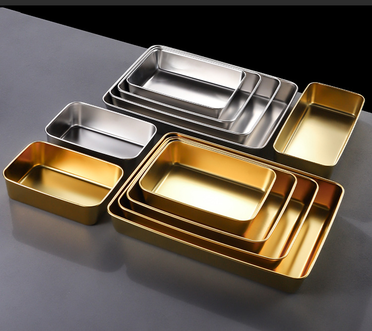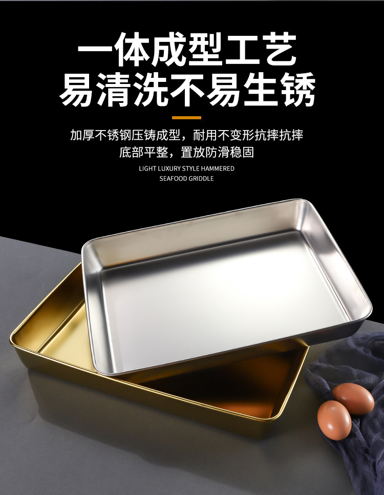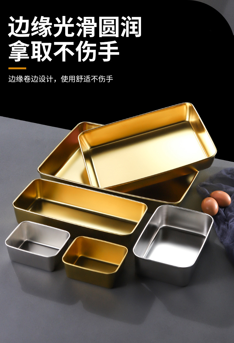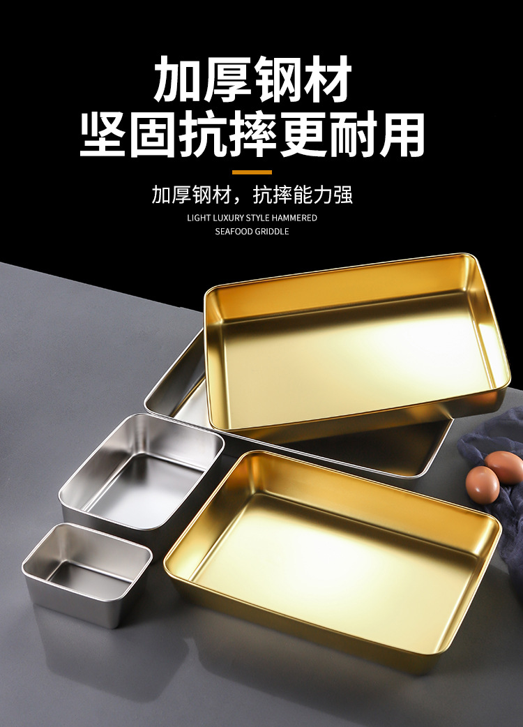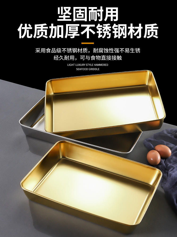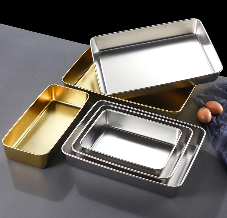 스테인레스 스틸 골드 플랫 스퀘어 플레이트 오리 목 냉장고 와인 트레이 직사각형 필터와 뚜껑 베이킹 팬 좁은 가장자리 플레이트스토어 가기