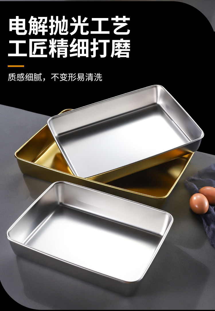 스테인레스 스틸 골드 플랫 스퀘어 플레이트 오리 목 냉장고 와인 트레이 직사각형 필터와 뚜껑 베이킹 팬 좁은 가장자리 플레이트
