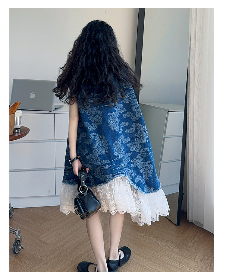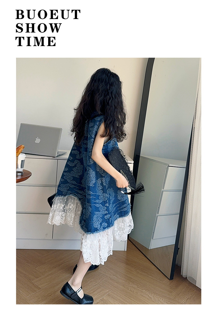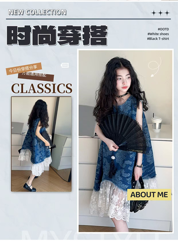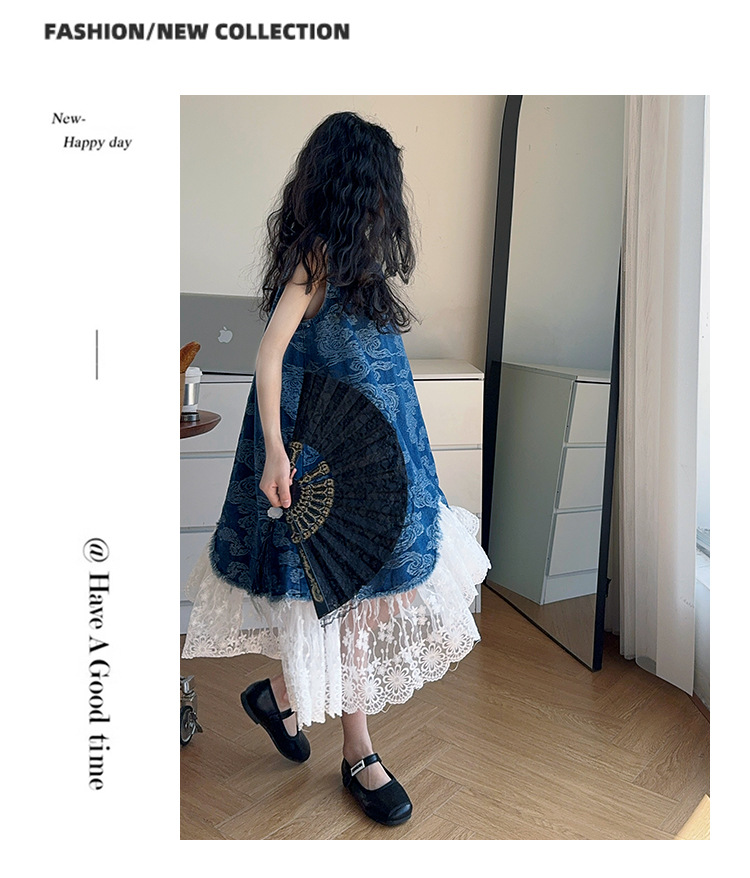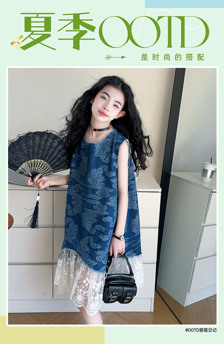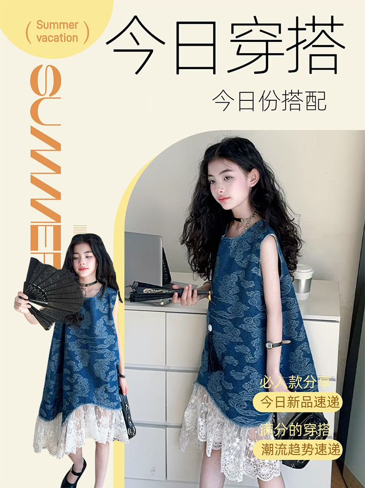 소녀 국가 패션 민소매 데님 스커트 2025 여름 새로운 스타일 중대형 어린이 새로운 중국 스타일 조끼 원피스스토어 가기