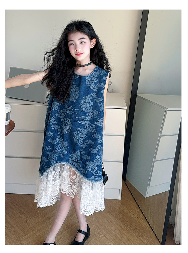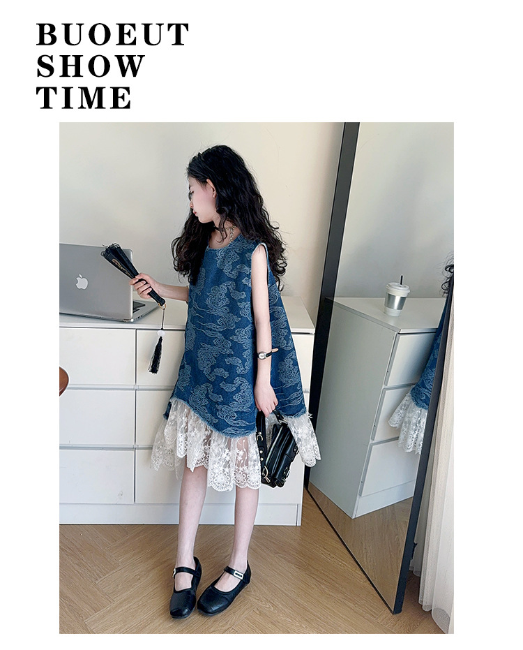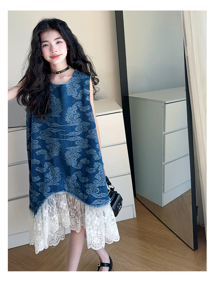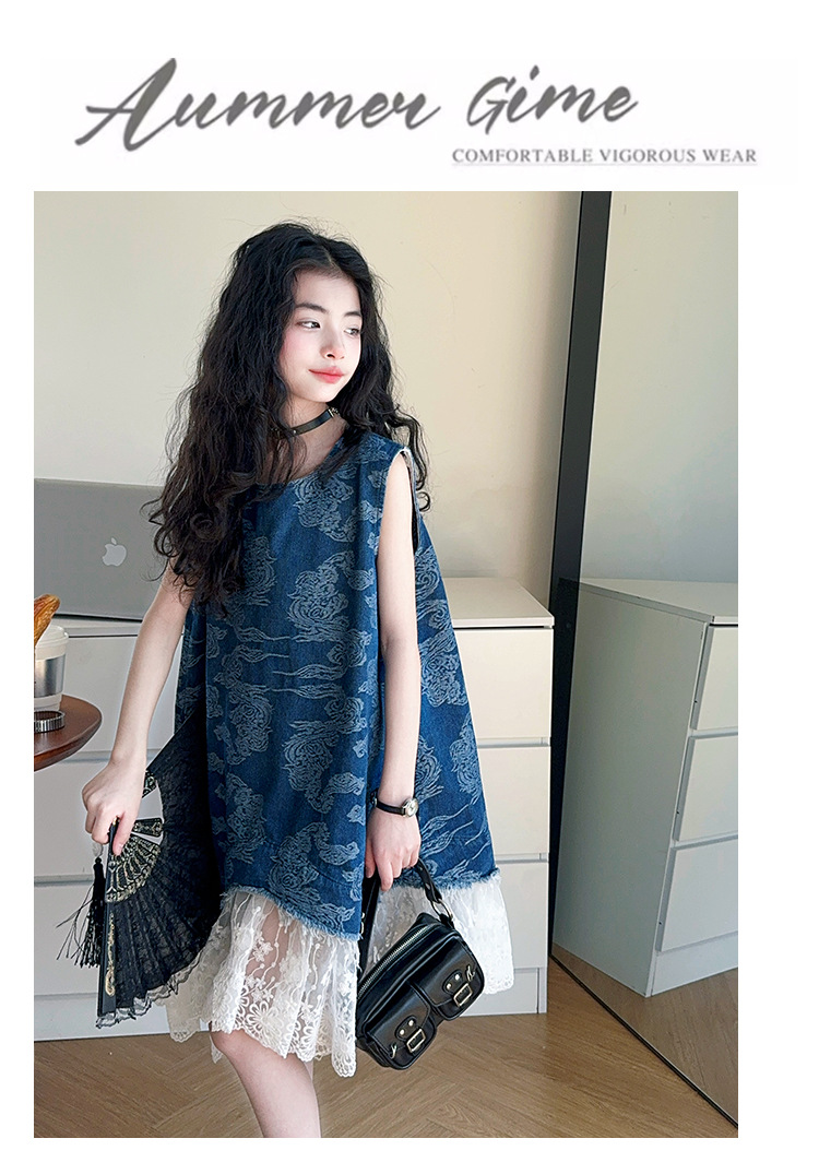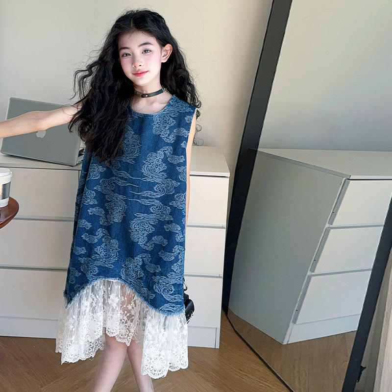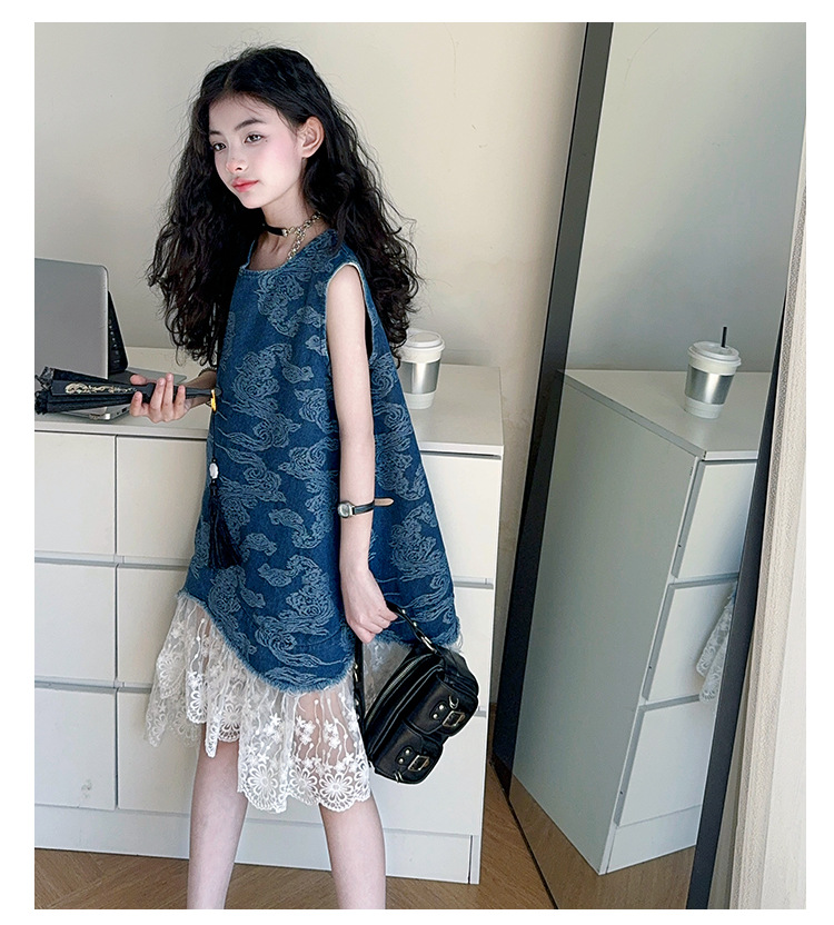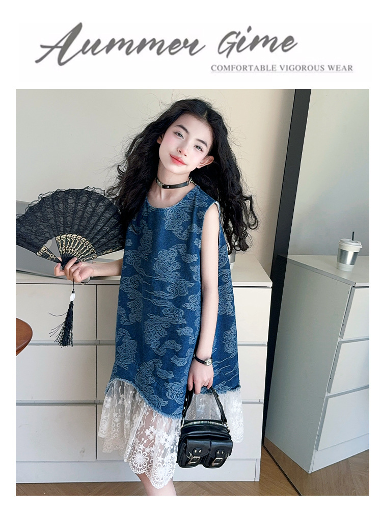 소녀 국가 패션 민소매 데님 스커트 2025 여름 새로운 스타일 중대형 어린이 새로운 중국 스타일 조끼 원피스