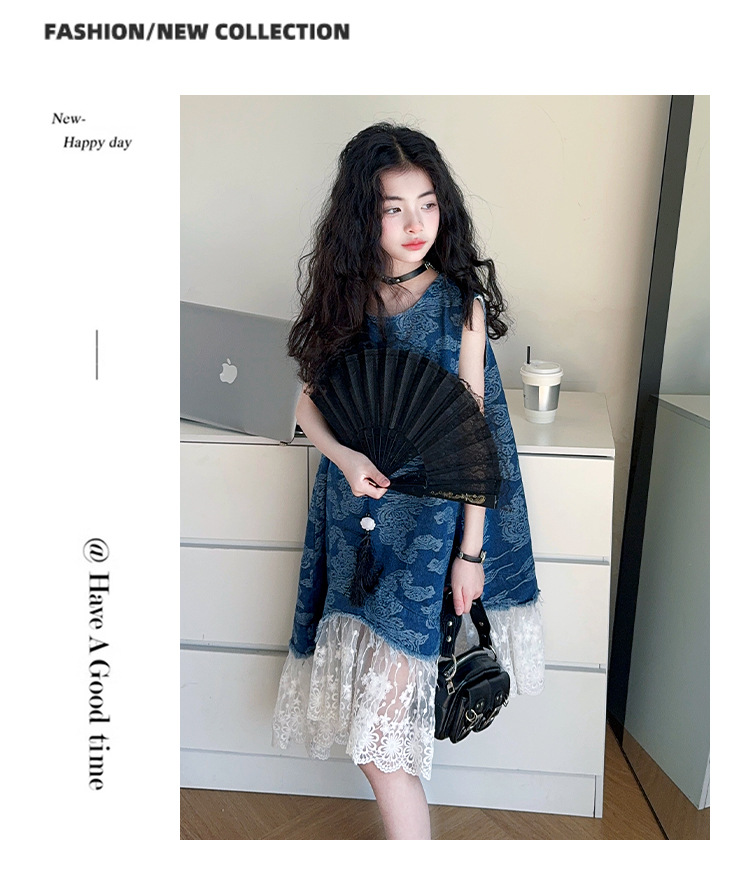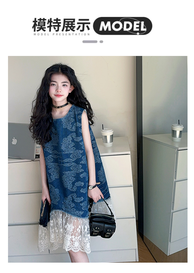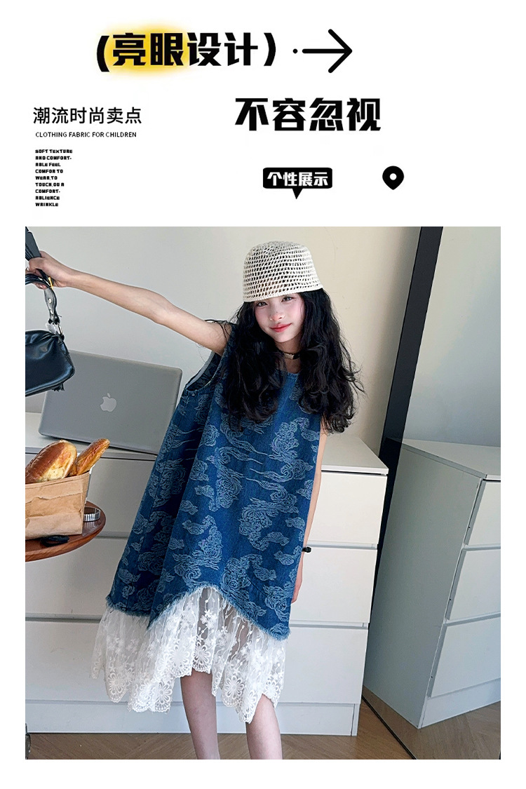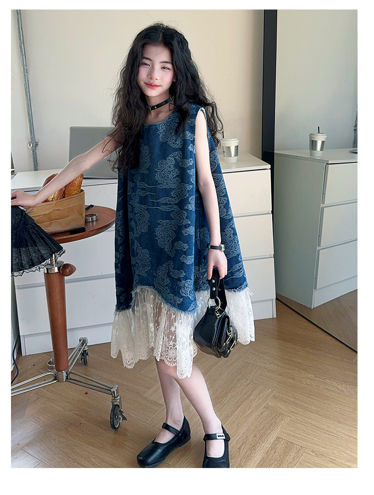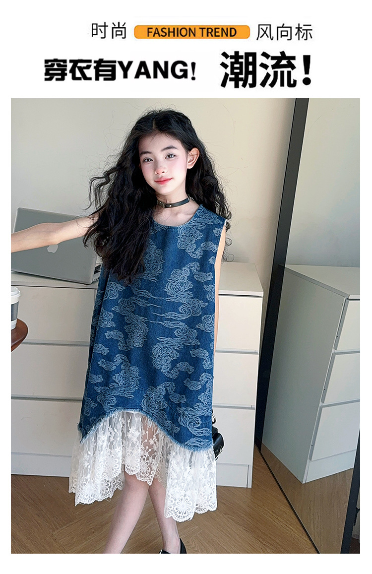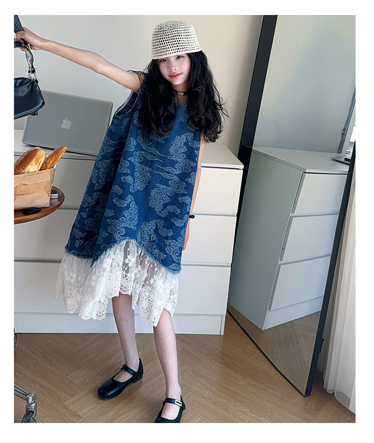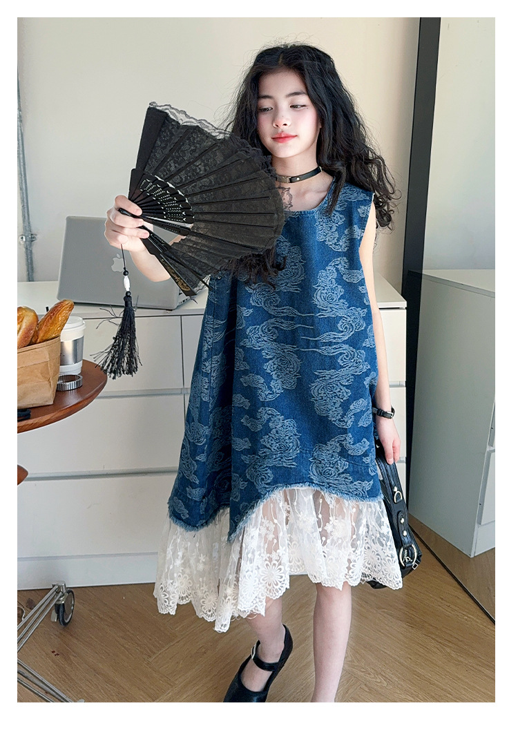 소녀 국가 패션 민소매 데님 스커트 2025 여름 새로운 스타일 중대형 어린이 새로운 중국 스타일 조끼 원피스