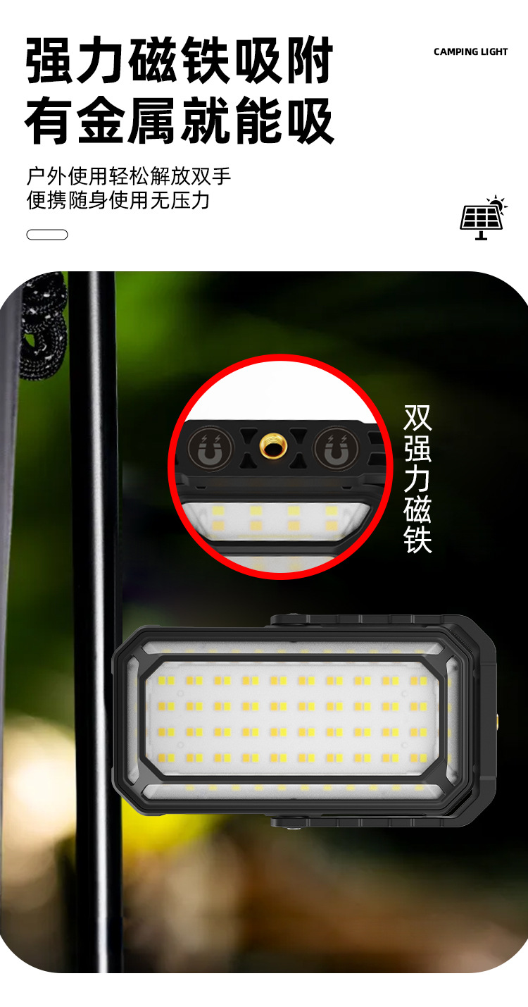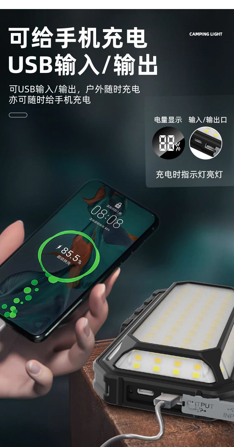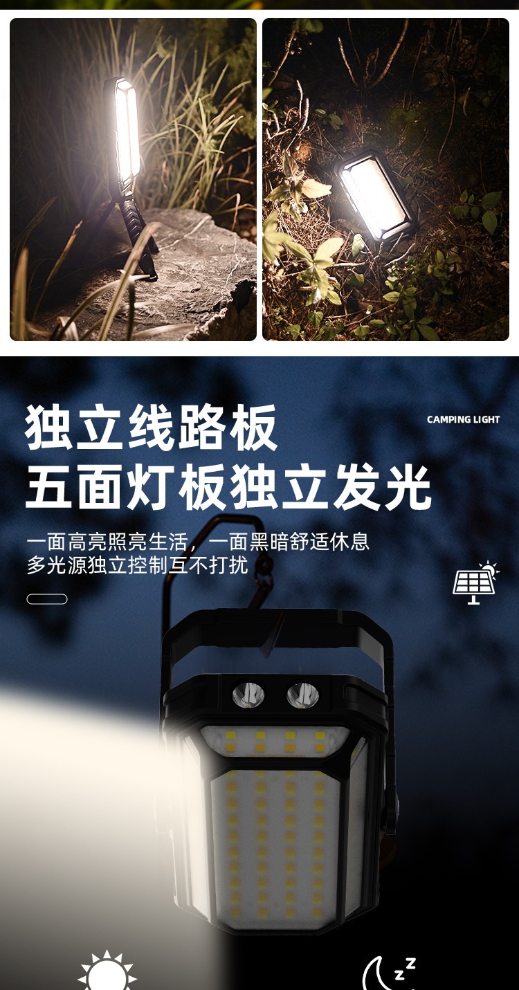 국경 간 새로운 태양 작업 조명 USB 충전 야외 빨간색과 파란색 경고 긴 수명 비상 캠핑 텐트 조명스토어 가기