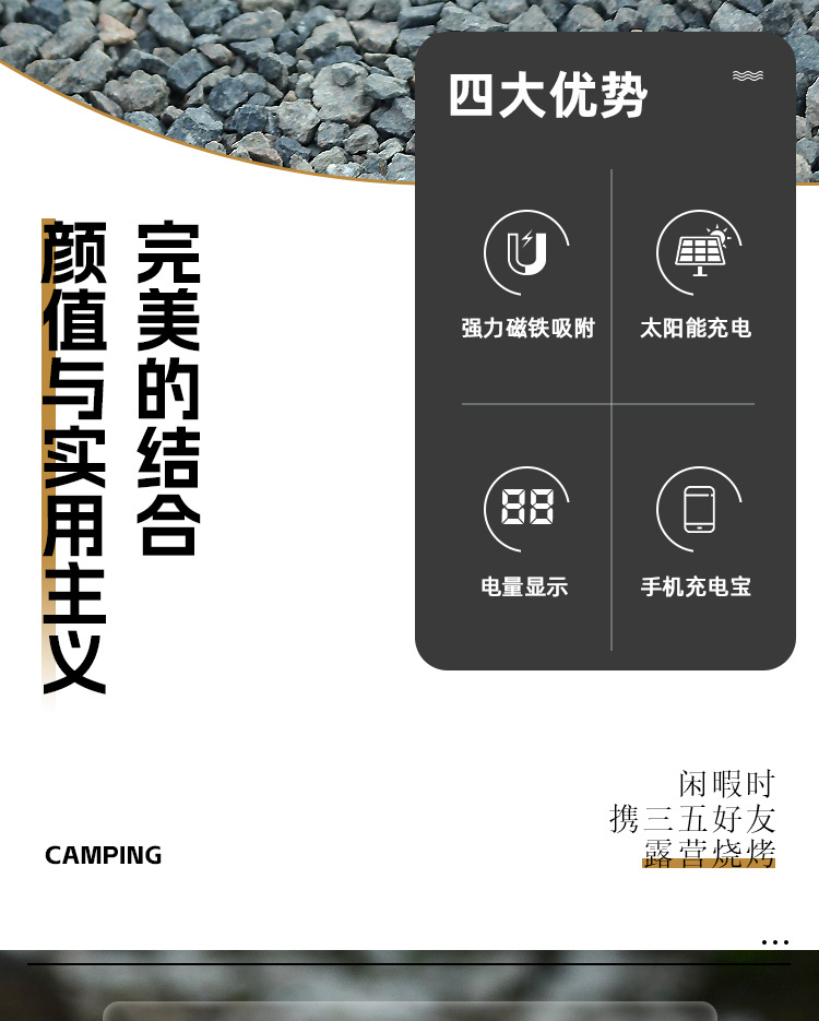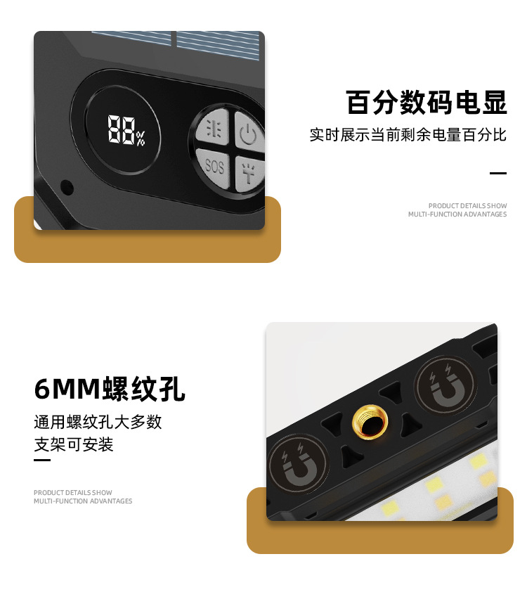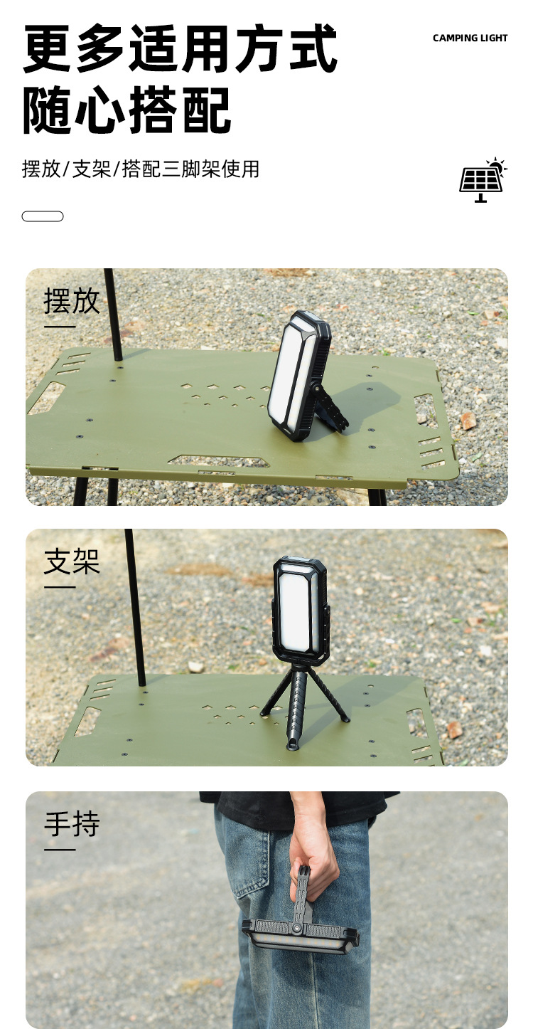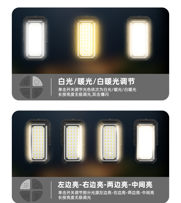 국경 간 새로운 태양 작업 조명 USB 충전 야외 빨간색과 파란색 경고 긴 수명 비상 캠핑 텐트 조명스토어 가기
