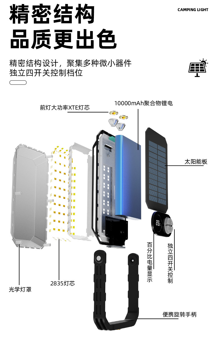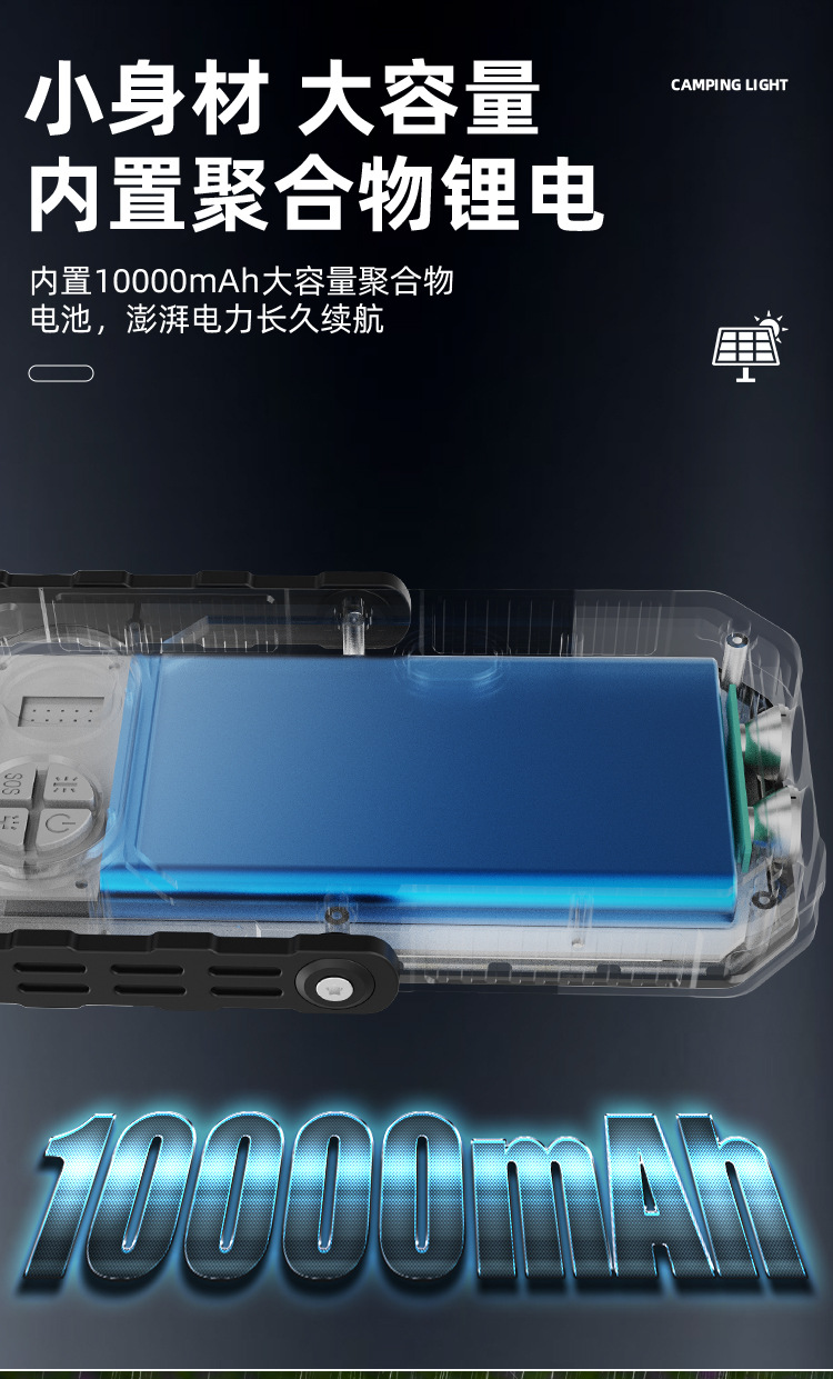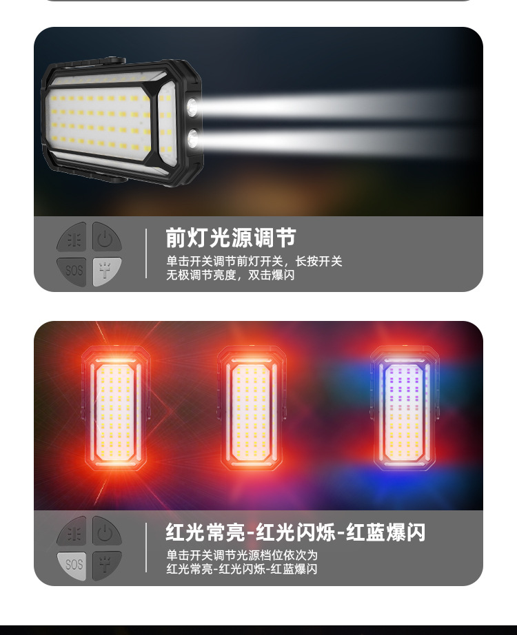 국경 간 새로운 태양 작업 조명 USB 충전 야외 빨간색과 파란색 경고 긴 수명 비상 캠핑 텐트 조명
