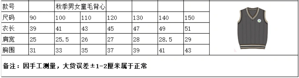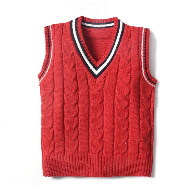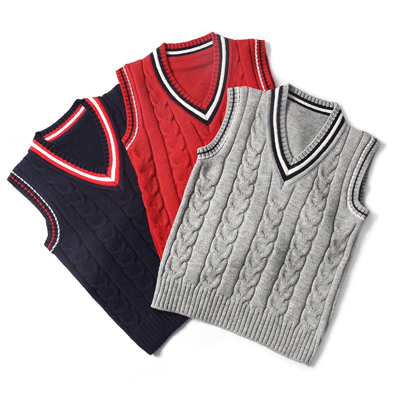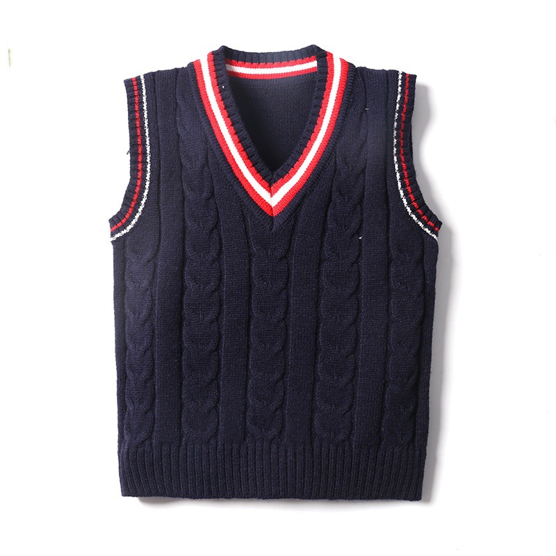 가을 겨울 한국식 아동 모직 조끼, 남녀 니트 조끼, 교복, 브이넥 스웨터, 캐미솔, 유치원 교복