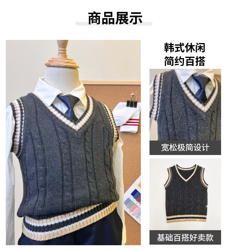 가을 겨울 한국식 아동 모직 조끼, 남녀 니트 조끼, 교복, 브이넥 스웨터, 캐미솔, 유치원 교복스토어 가기