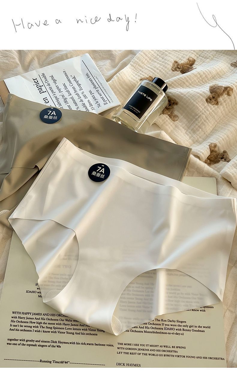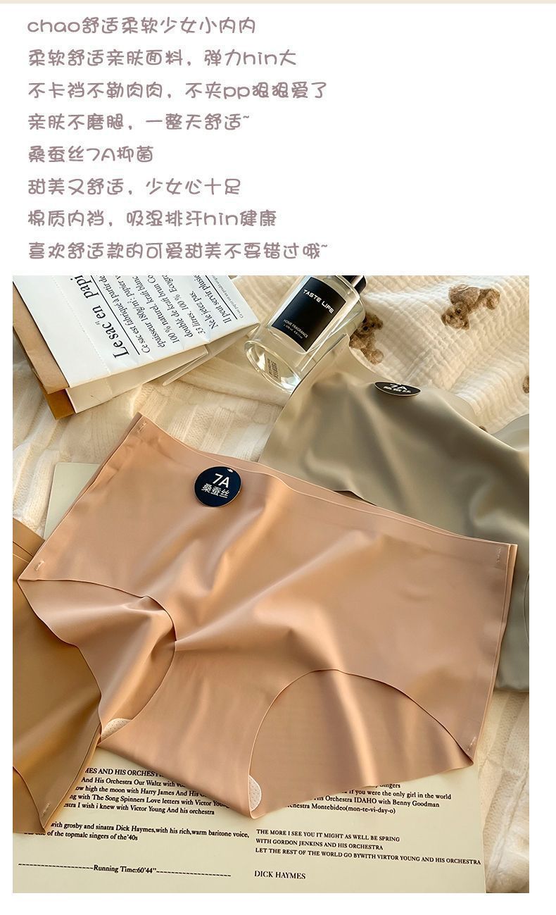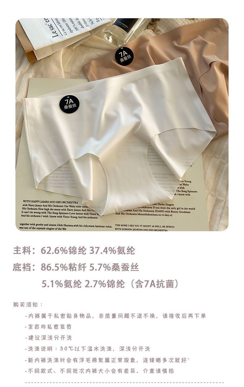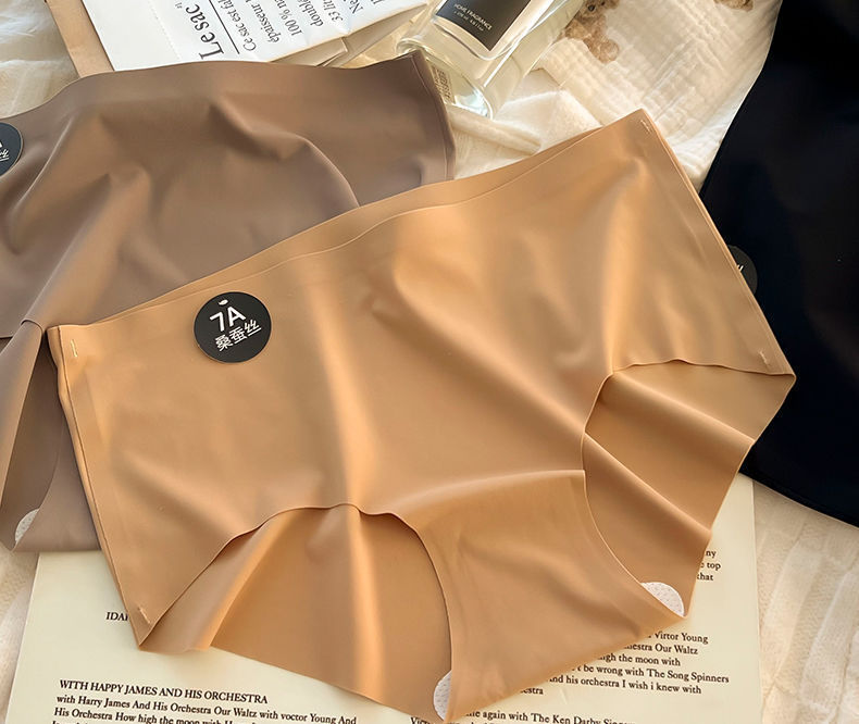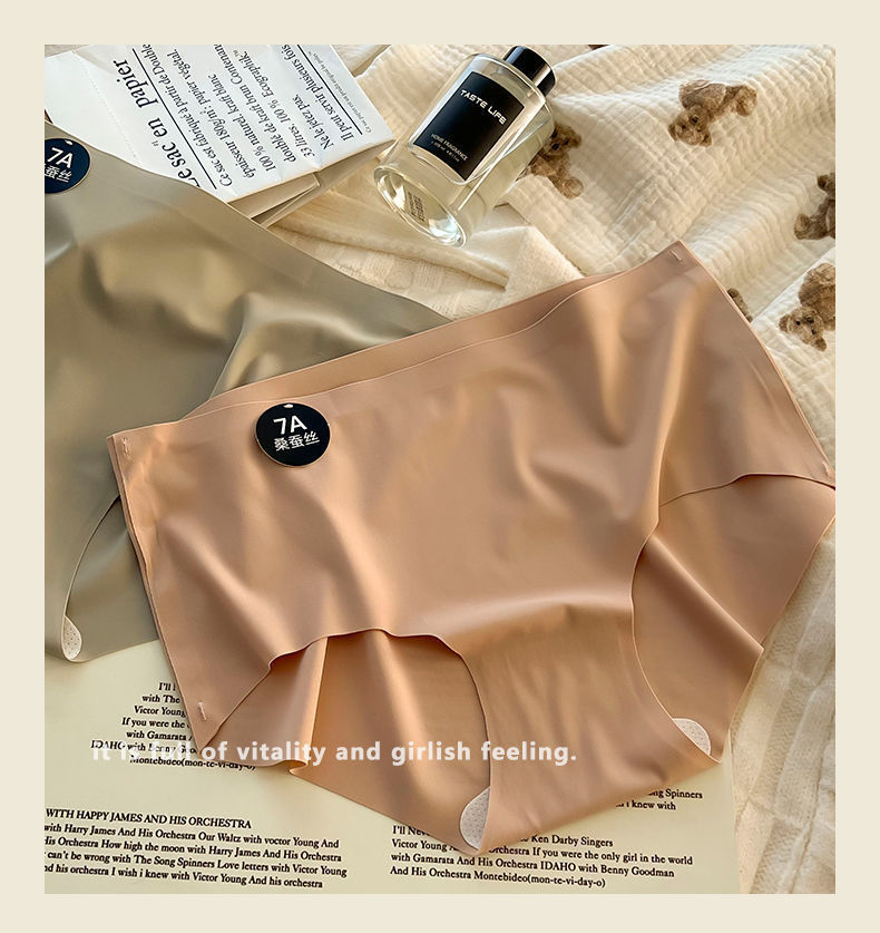 새로운 스타일의 밀크 스킨 심리스 아이스 실크 퓨어 코튼 가랑이 7A 항균 여성용 가랑이 보이지 않는 팬티 중간 허리 속옷스토어 가기