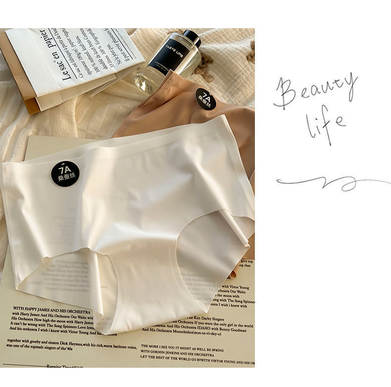 새로운 스타일의 밀크 스킨 심리스 아이스 실크 퓨어 코튼 가랑이 7A 항균 여성용 가랑이 보이지 않는 팬티 중간 허리 속옷