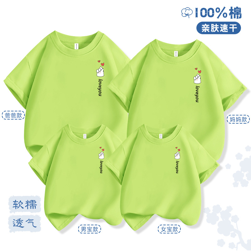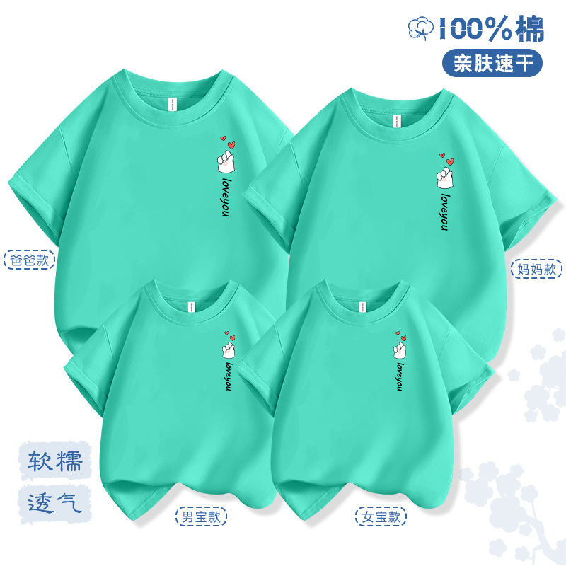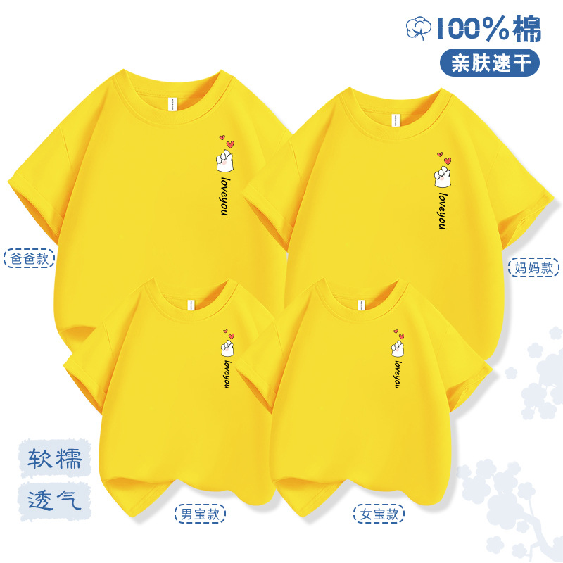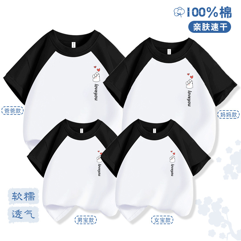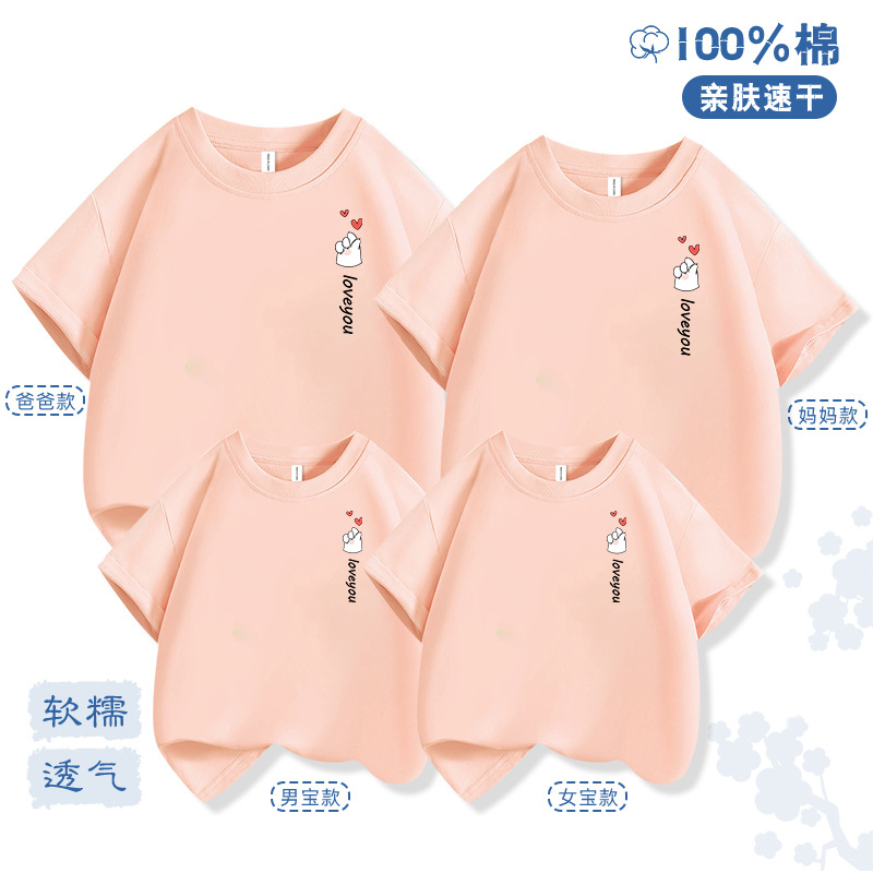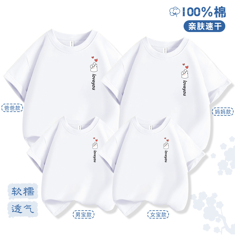 Bixin 부모-자식 반팔 2025 여름 새로운 트렌드 3인 가족 및 4인 가족 순면 티셔츠 도매 배송스토어 가기