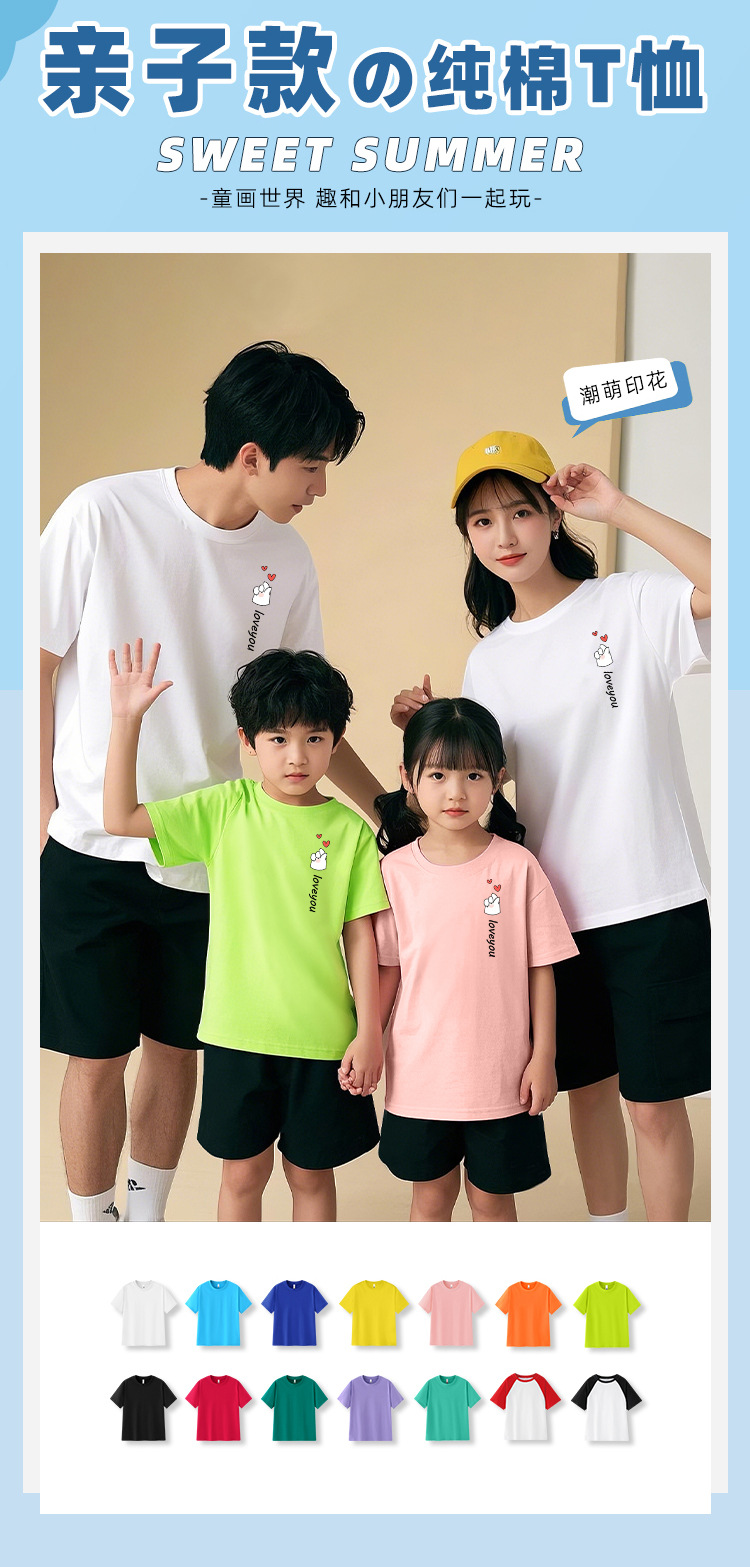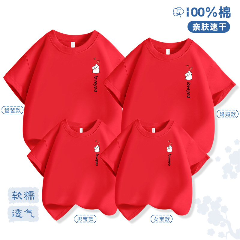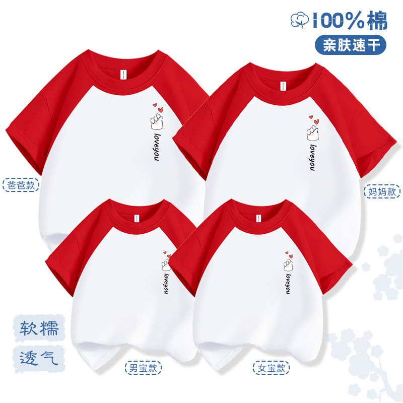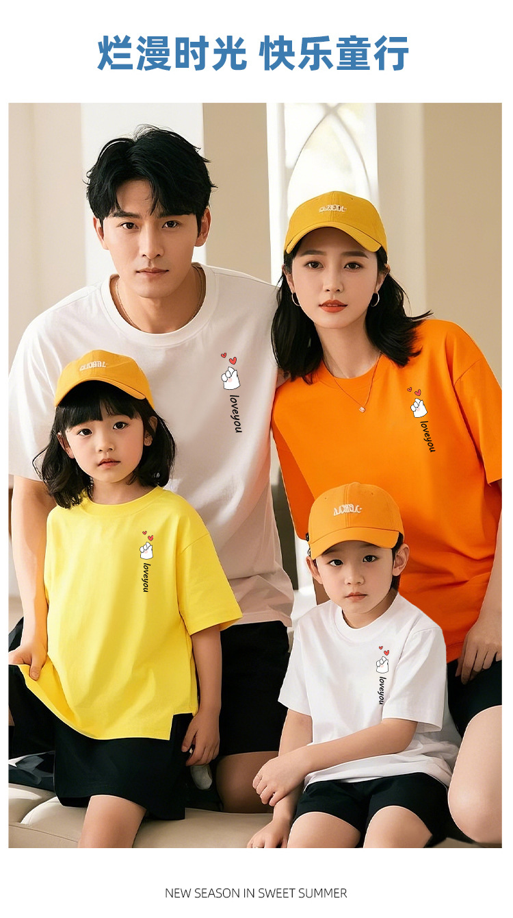 Bixin 부모-자식 반팔 2025 여름 새로운 트렌드 3인 가족 및 4인 가족 순면 티셔츠 도매 배송스토어 가기