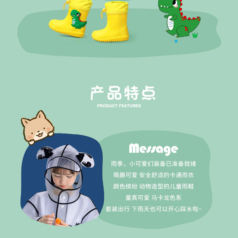어린이 비옷 소년과 소녀 비오는 날 방수 판초 큰 챙 유치원 아기 귀여운 만화 판초스토어 가기