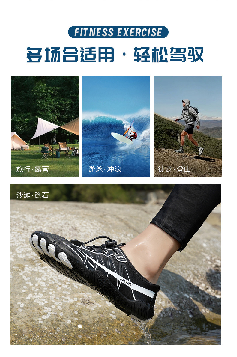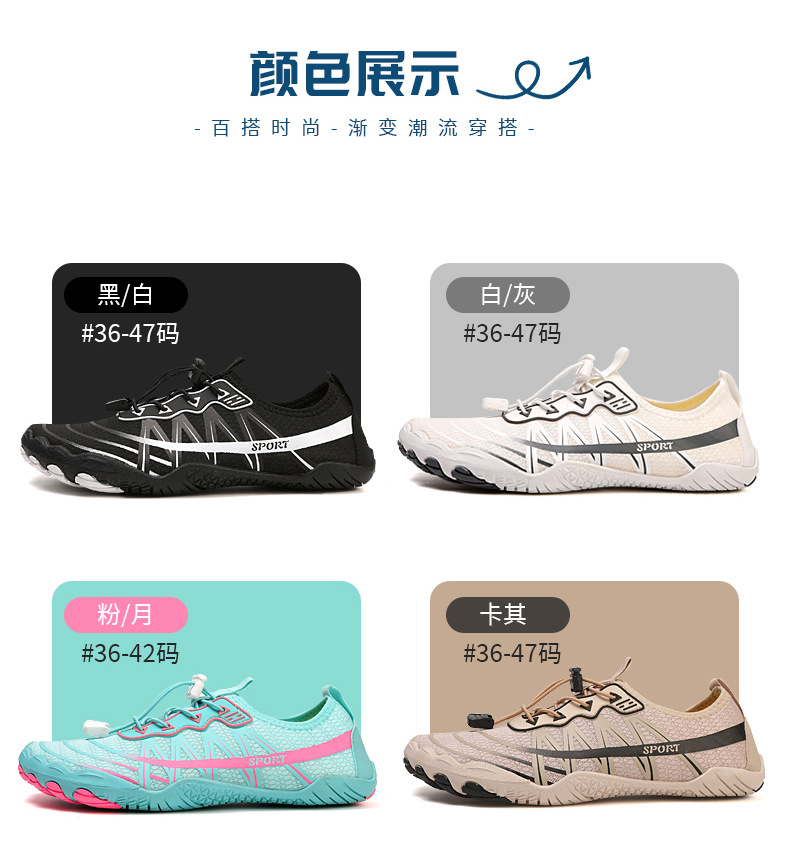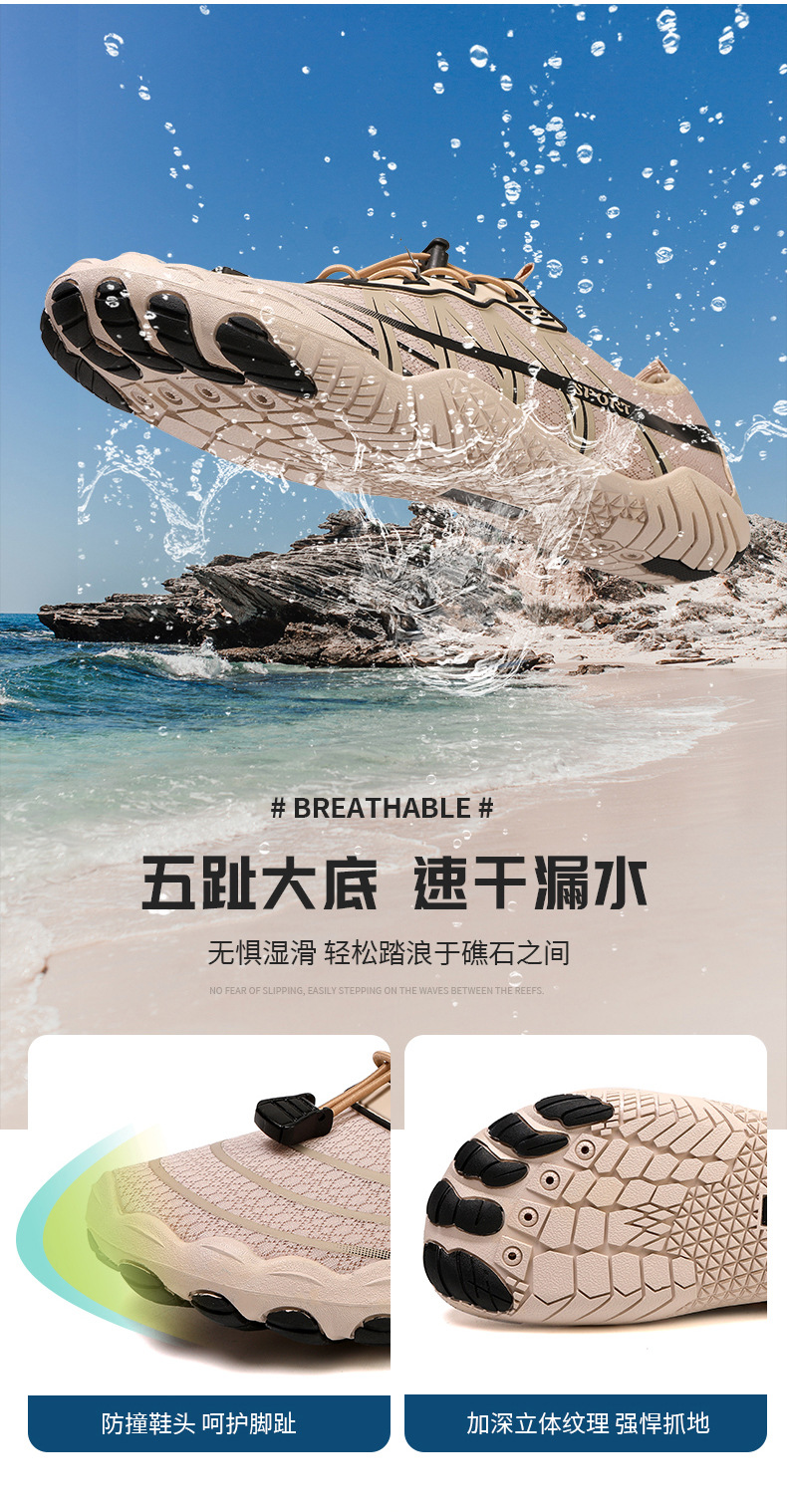 남성용 신형 속건성 통기성 낚시 및 웨이딩 슈즈, 여성용 비치 피부 친화적인 수영 다섯 손가락 슈즈, 야외용 리버 트레이싱 슈즈스토어 가기