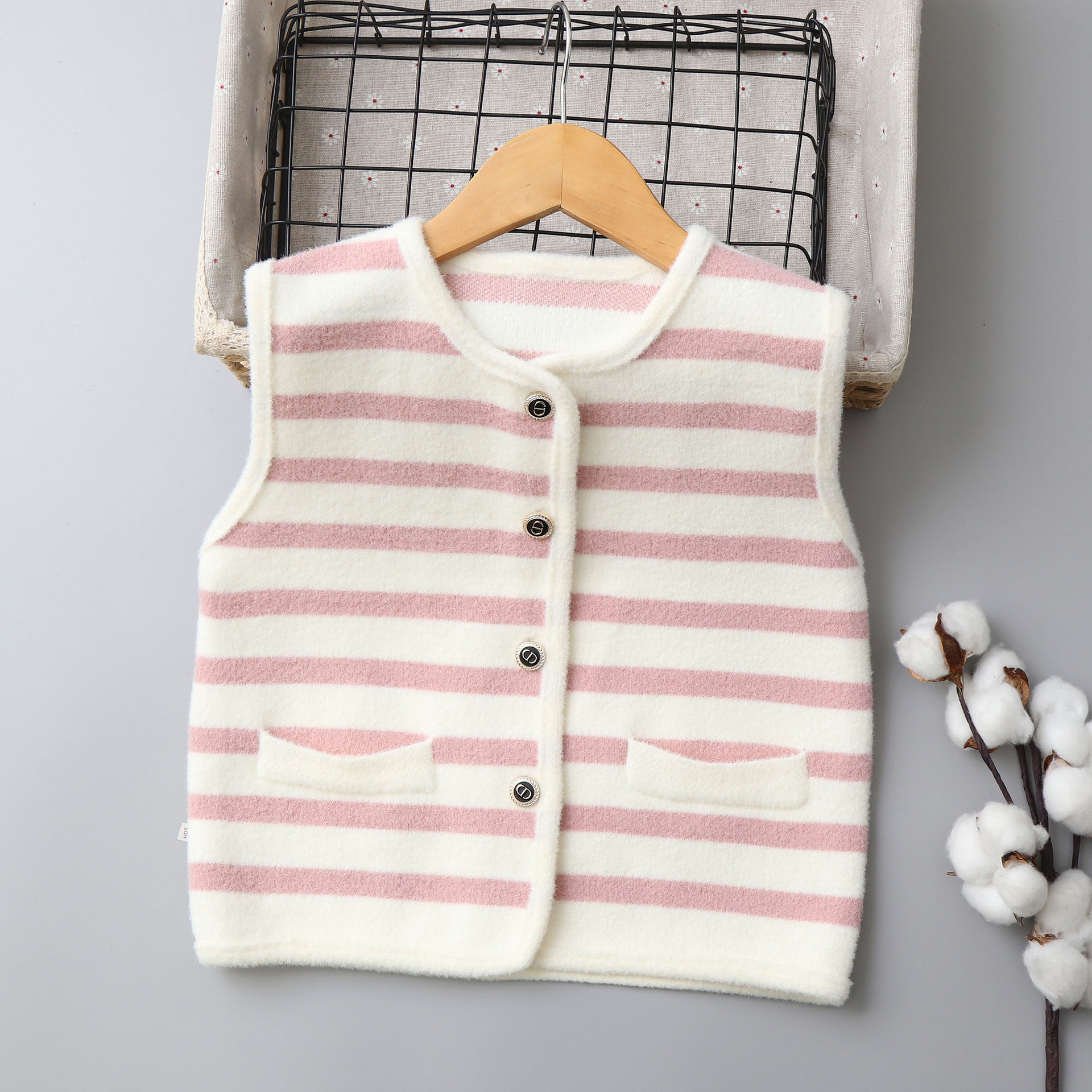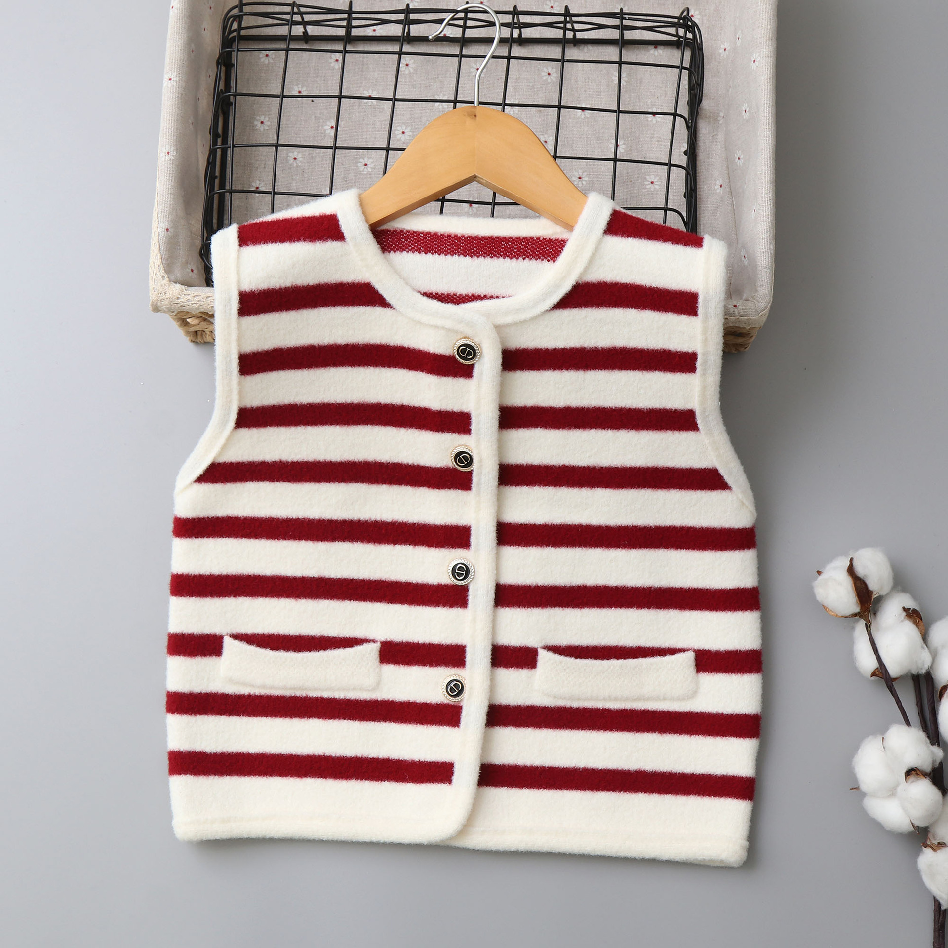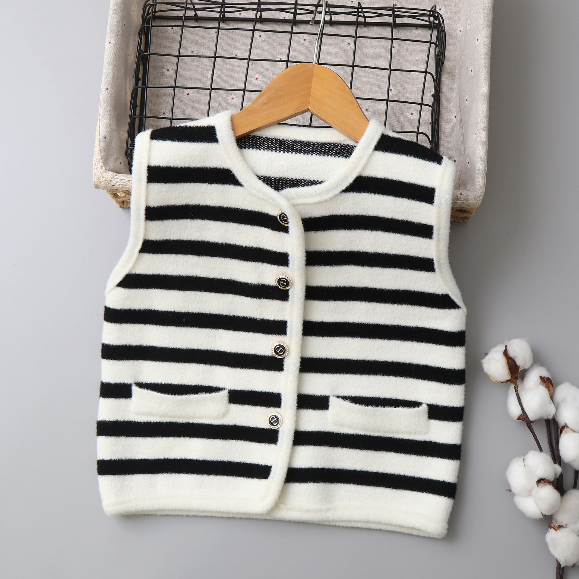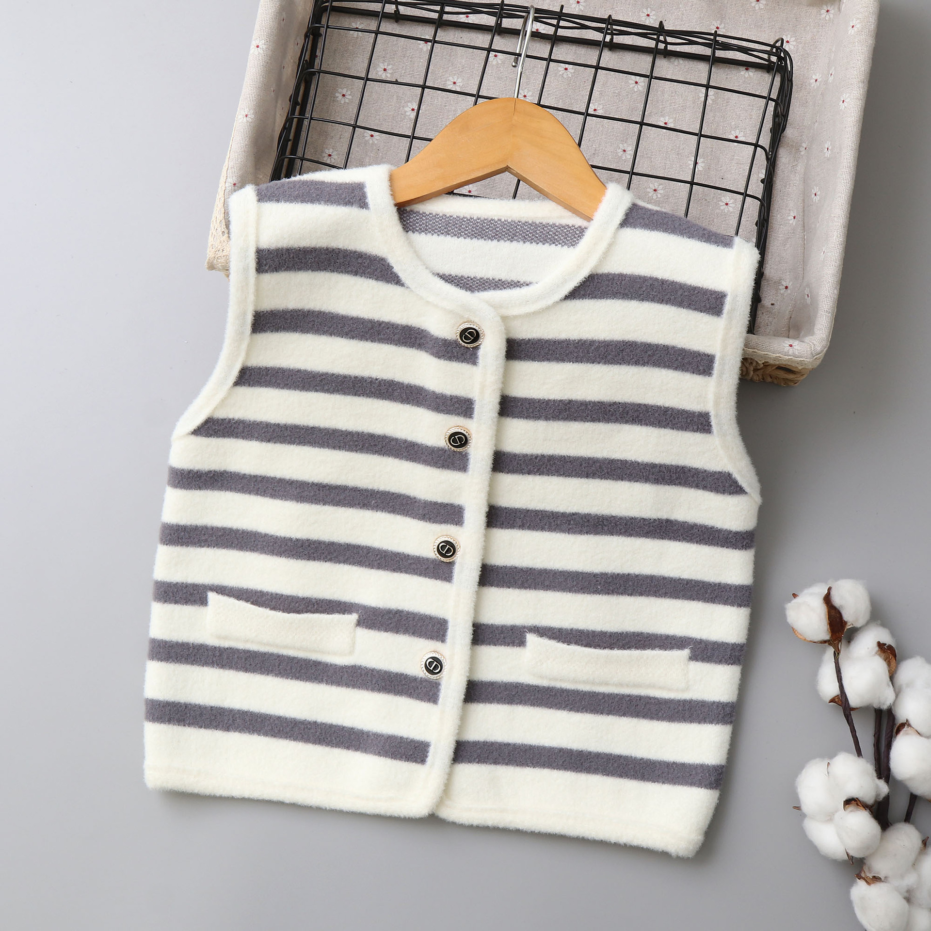 880 국경 간 특별 스트라이프 한국 벨벳 소녀 조끼 아동 조끼 2025 가을, 겨울 새로운 아동 의류 양복 조끼