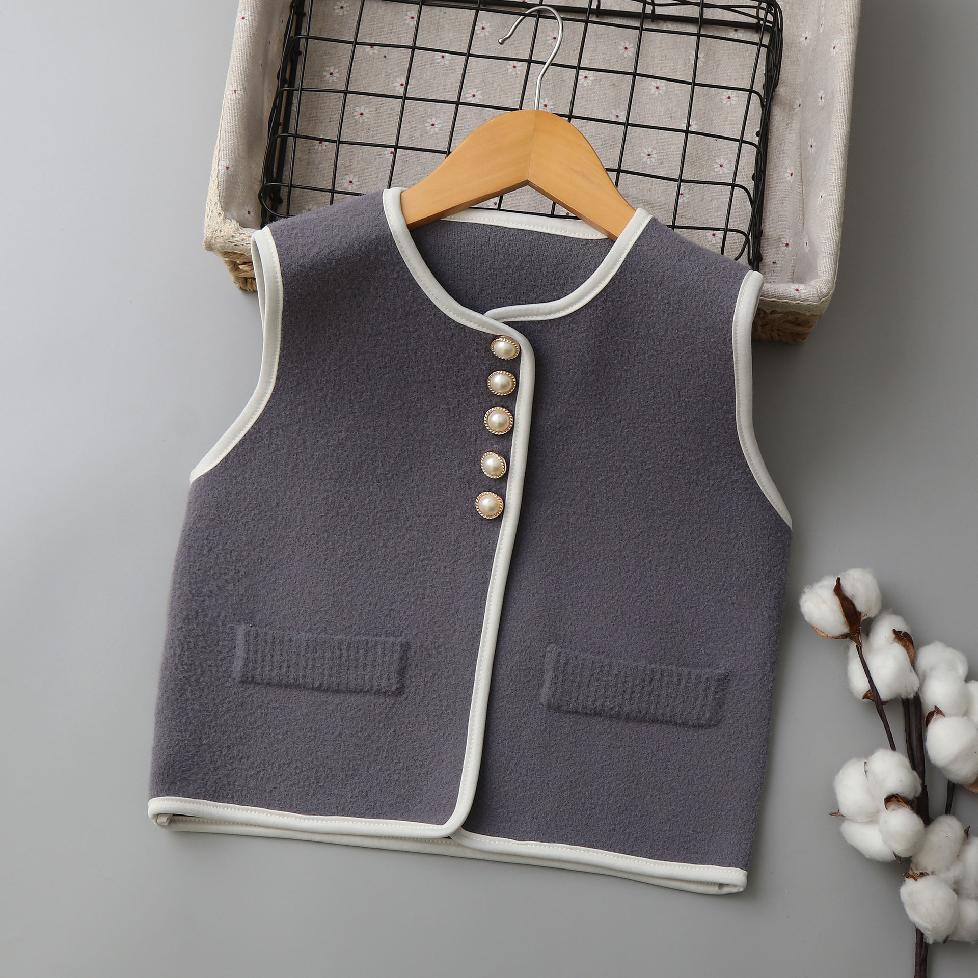88033 한국 벨벳 여아 조끼 및 아동 조끼 2025 가을 겨울 신작 아동 조끼의 작은 향기로운 스타일을 위한 국경 간 특별 공급