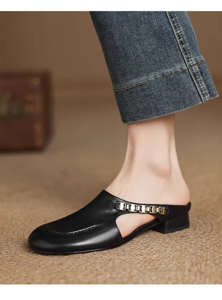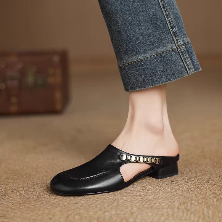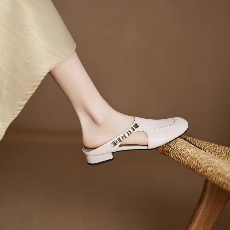 2025 새로운 여성 신발 유행 여름 캐주얼 두꺼운 하이힐 로우 힐 샌들 스퀘어 힐 바오터 리어 빈 패션 슬리퍼