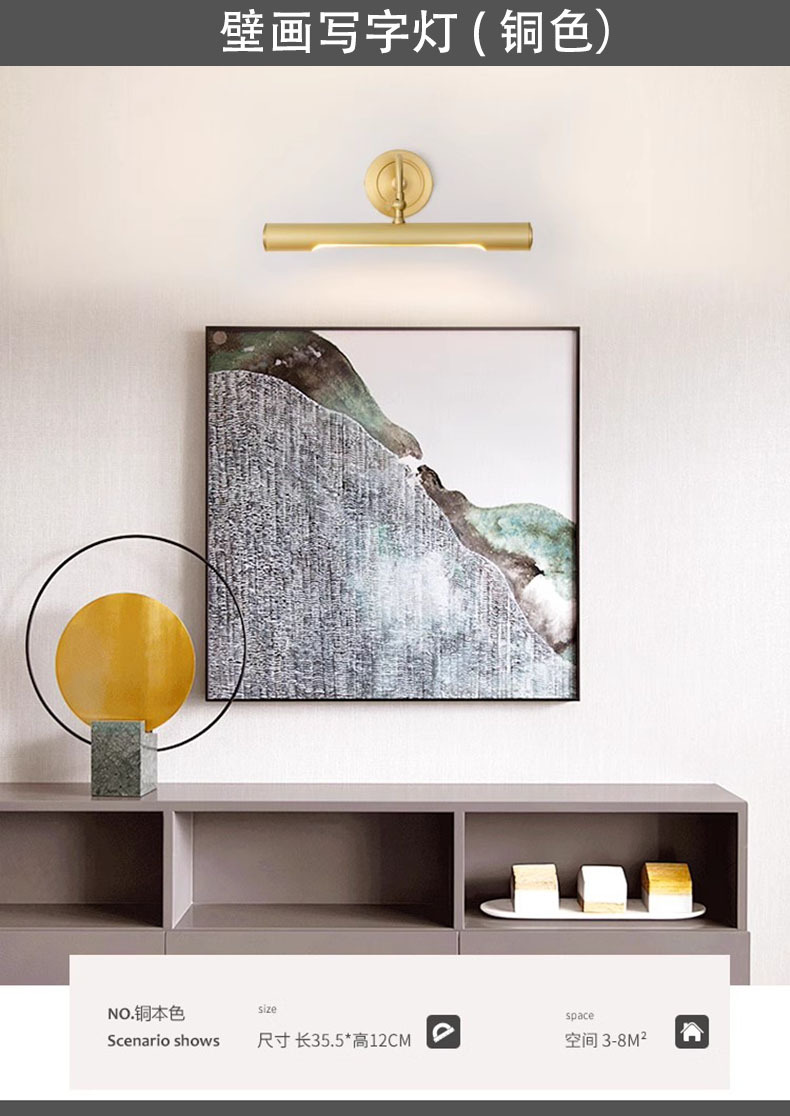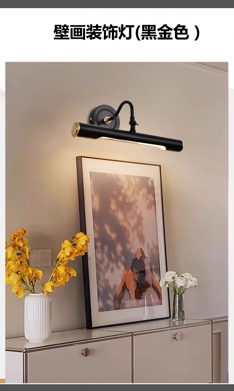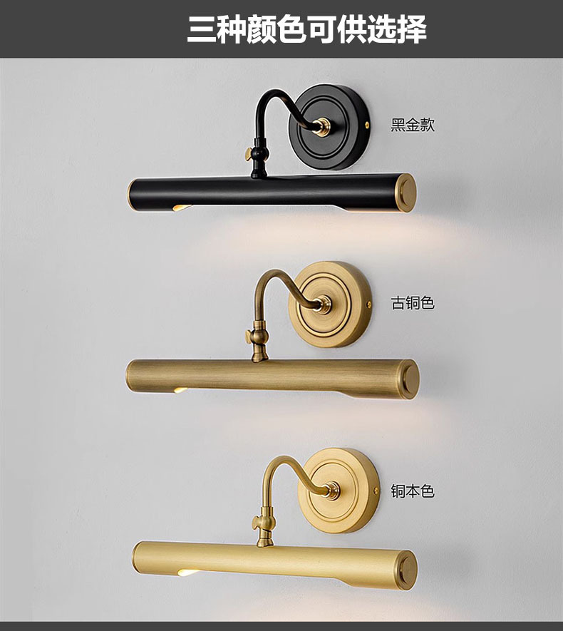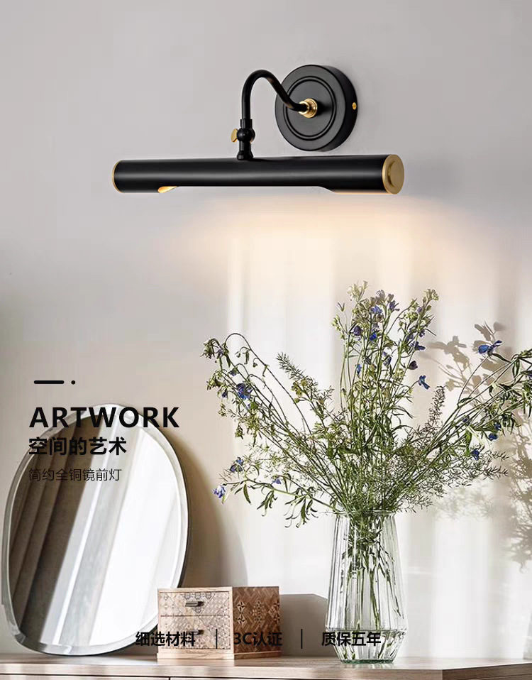 순수 구리 원형 튜브 벽 램프 사진 프레임 벽화 보조 조명 거실 배경 벽 곡선 튜브 조정 가능한 드레싱 테이블 거울 전면 램프