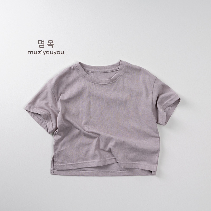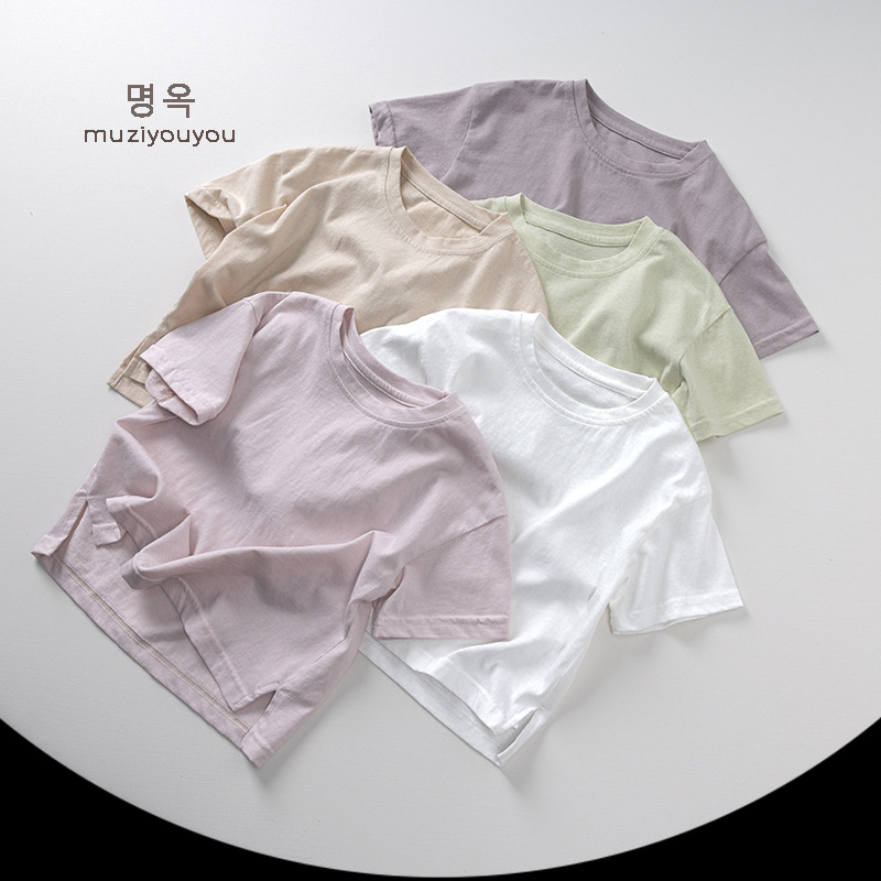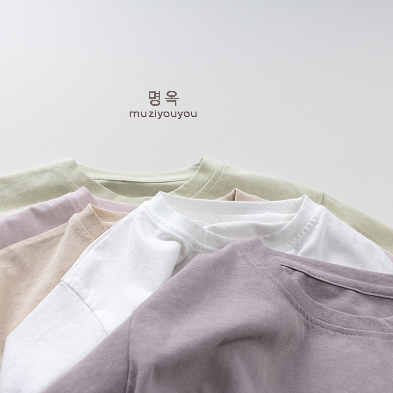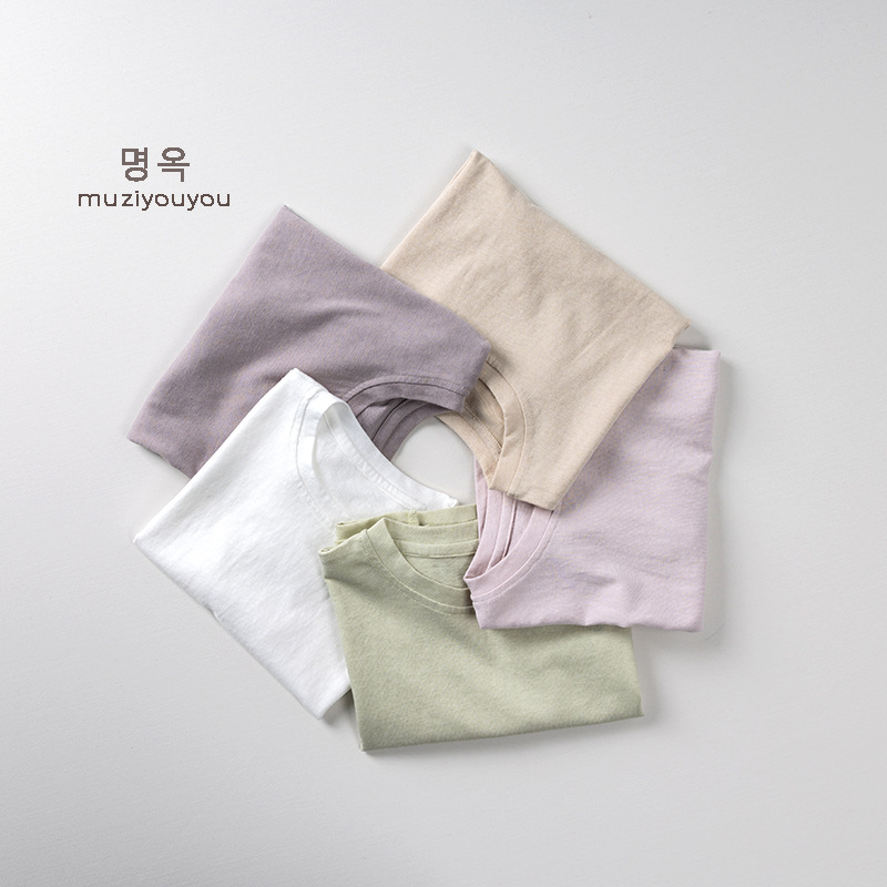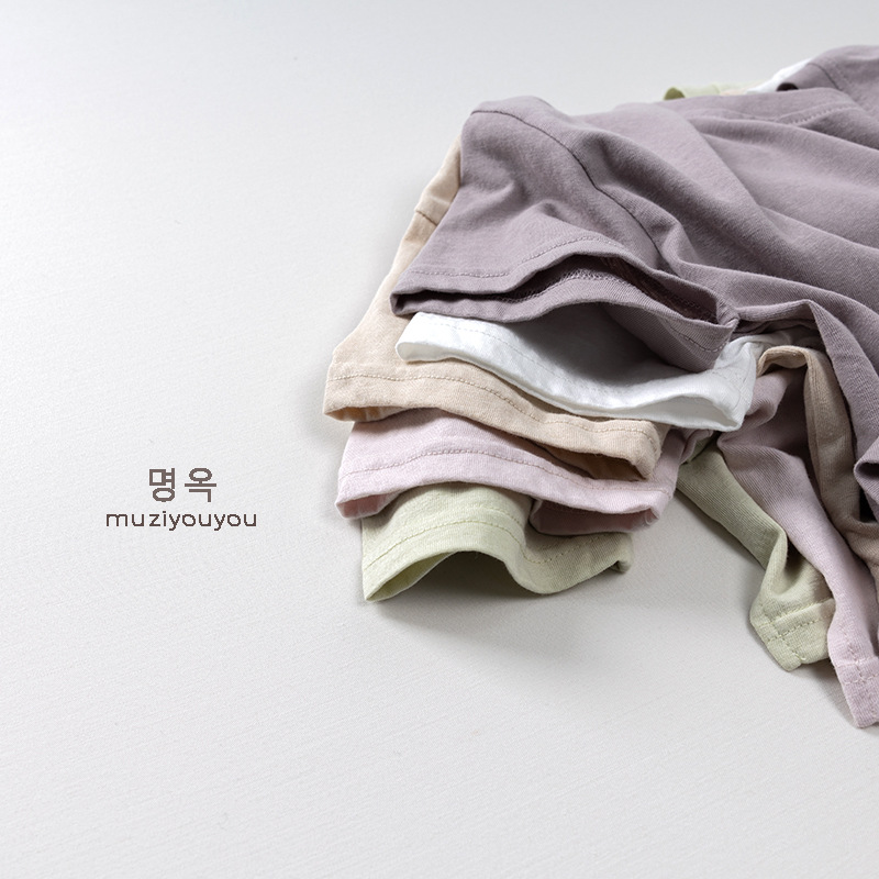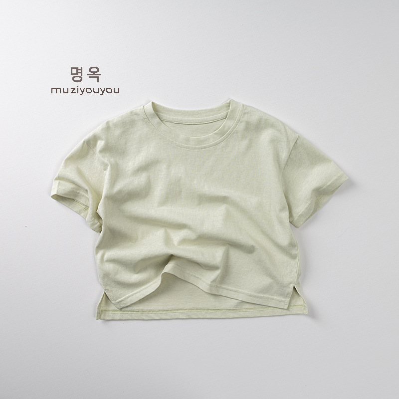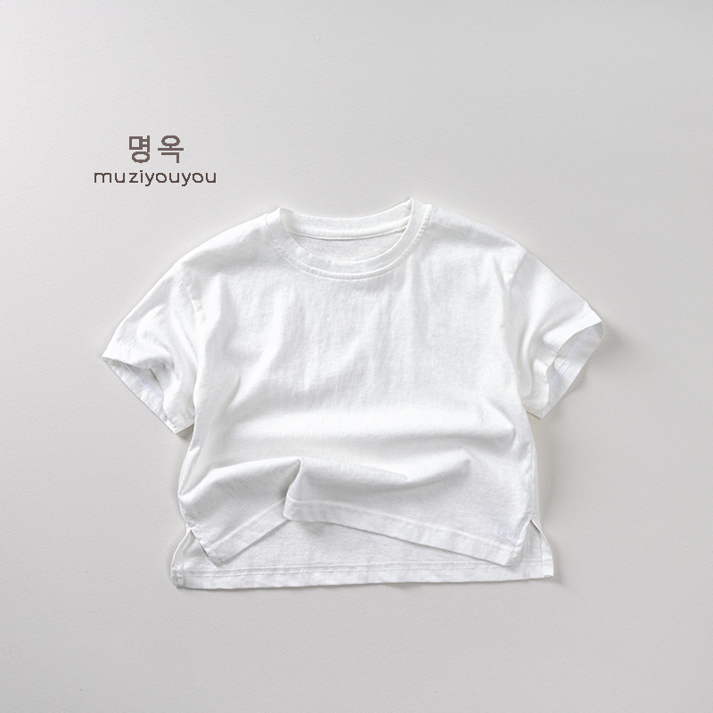 어린이 둥근 목 짧은 소매 얇은 기본 올 매치 티셔츠 2025 여름 새로운 남녀 아기 한국 최고의 아동복스토어 가기