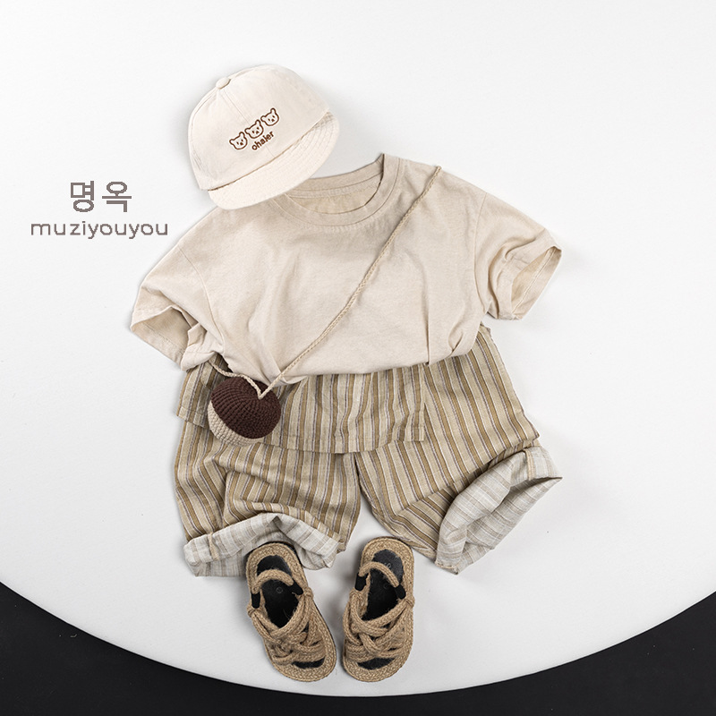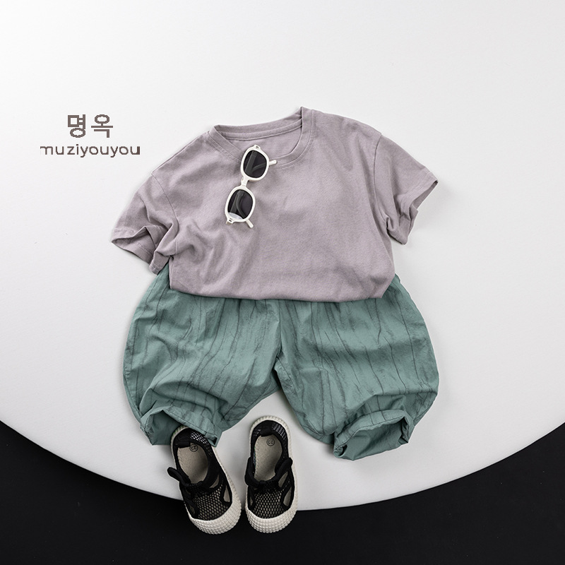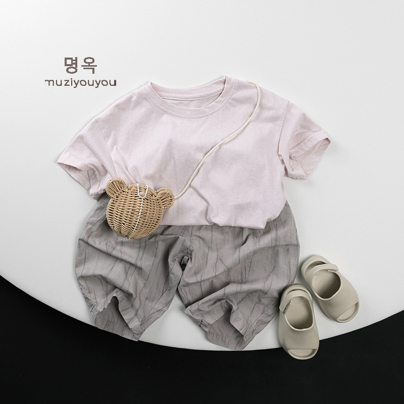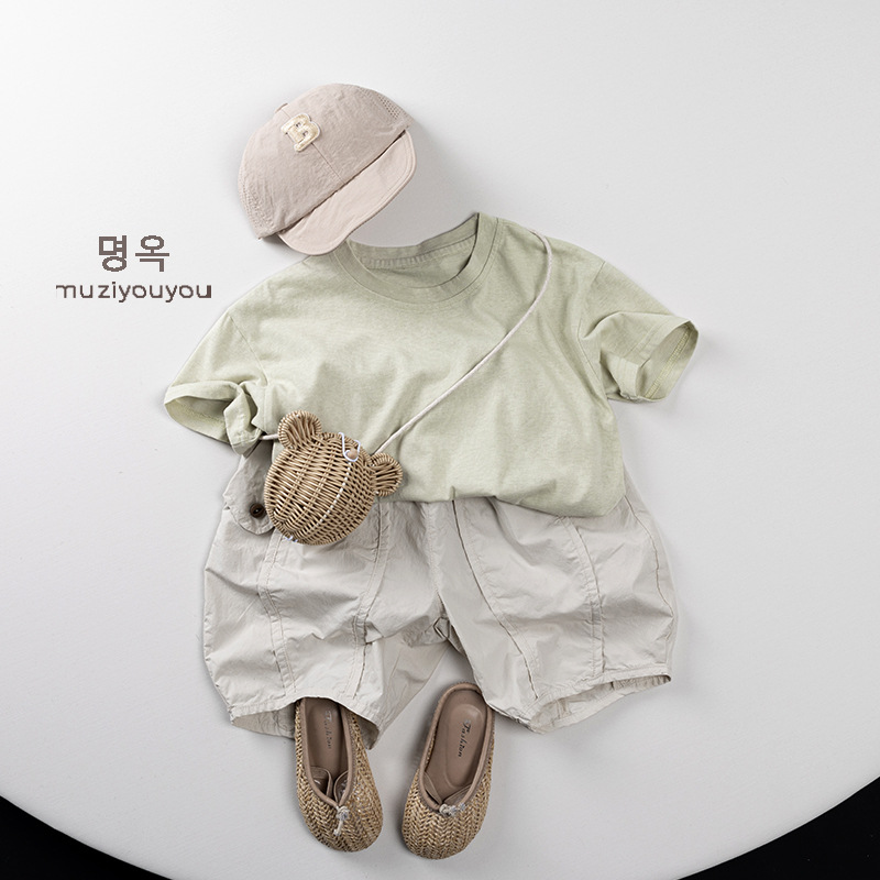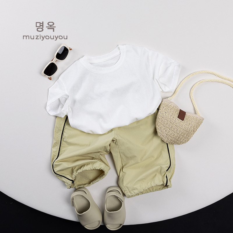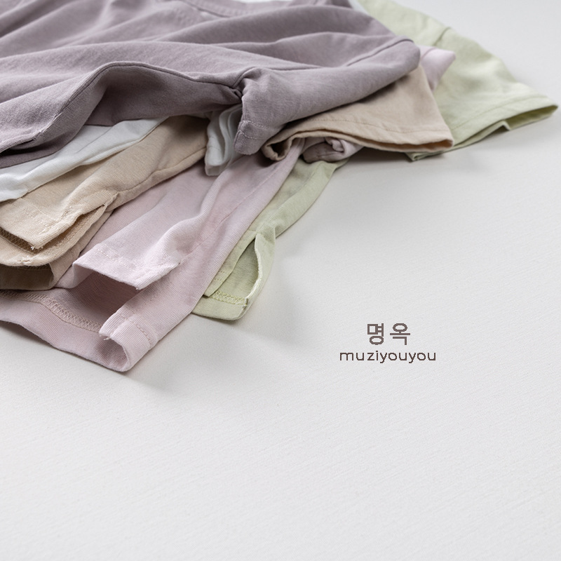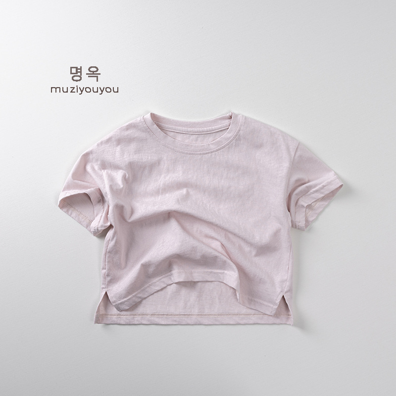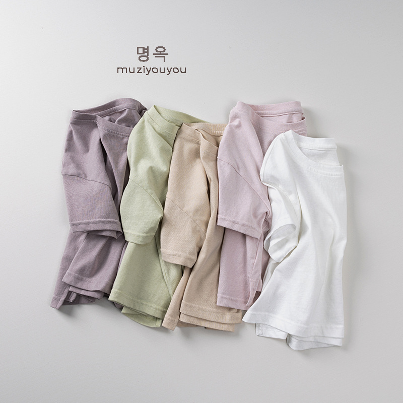 어린이 둥근 목 짧은 소매 얇은 기본 올 매치 티셔츠 2025 여름 새로운 남녀 아기 한국 최고의 아동복스토어 가기