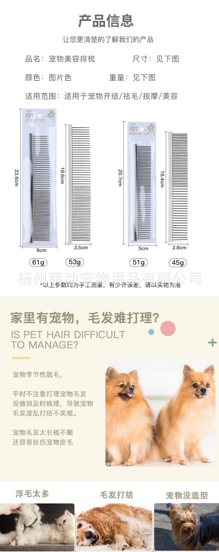 현물 판매, 인기 있는 애완동물 용품, 빗, 털 빗, 고양이 미용 청소, 떠다니는 털 제거, 매듭 빗, 국경 간 전용스토어 가기