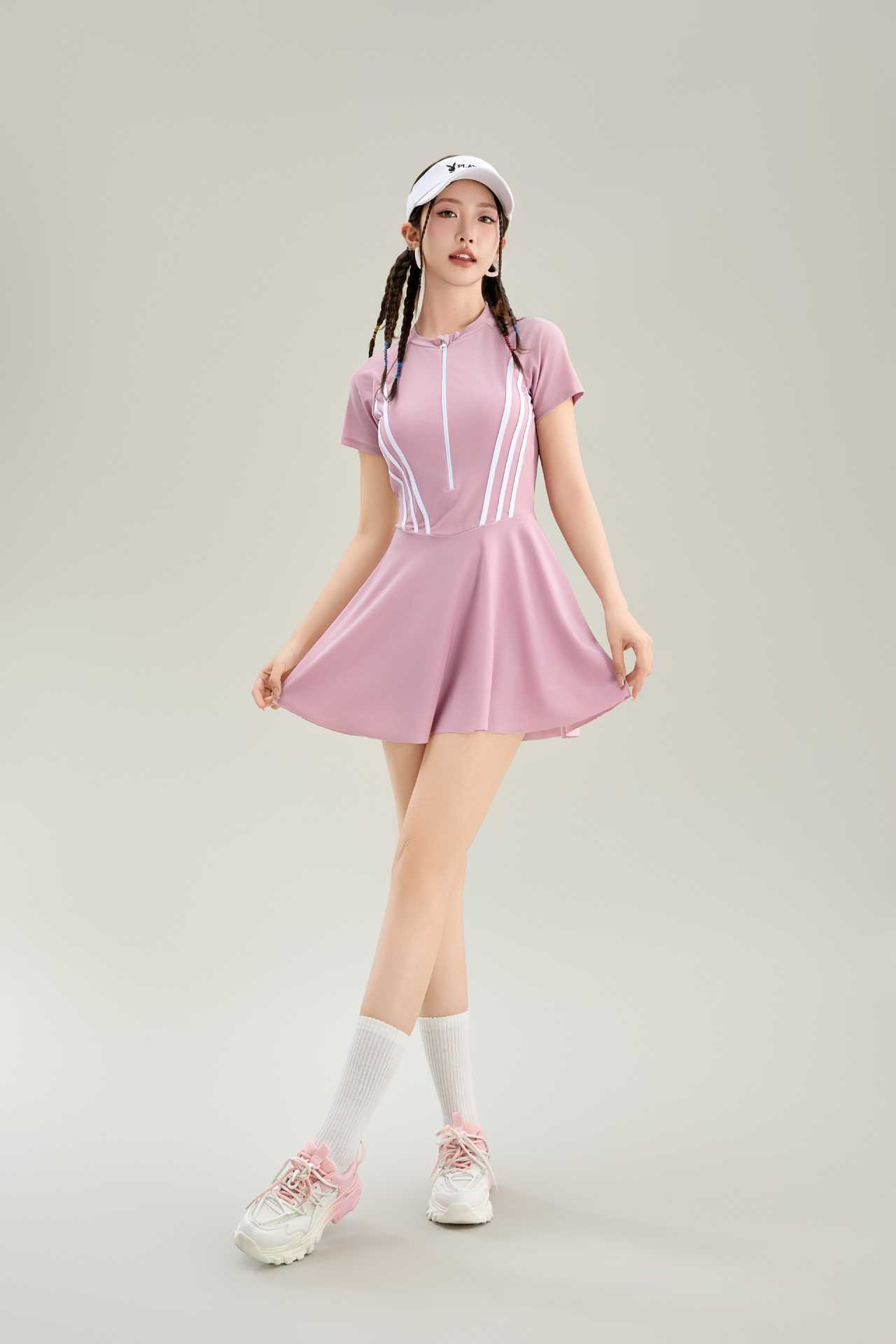 2025 새로운 수영복 여성 원피스 스커트 반팔 수영복 벨리 커버 슬리밍 학생 수영 스포츠 수영복 도매스토어 가기