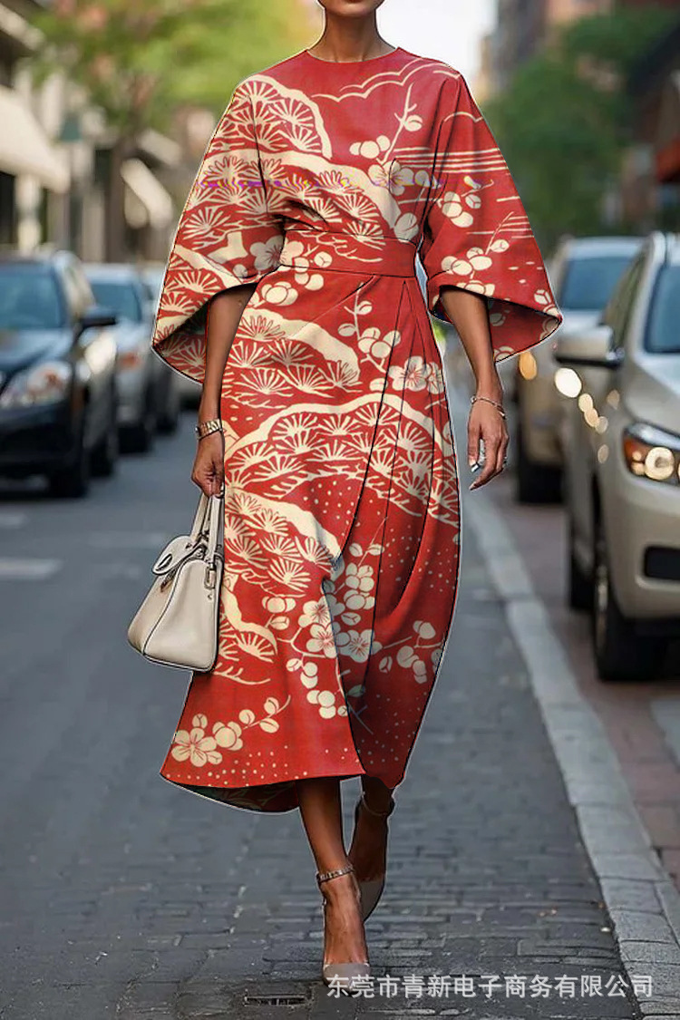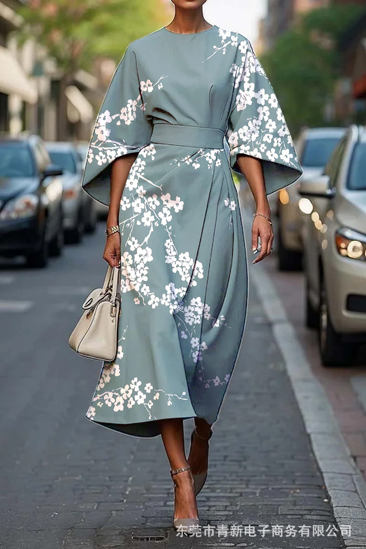 2025 크로스보더 독립 스테이션 아마존 플로럴 오션 이터널 엘레강스 드레스 E439 여성 드레스