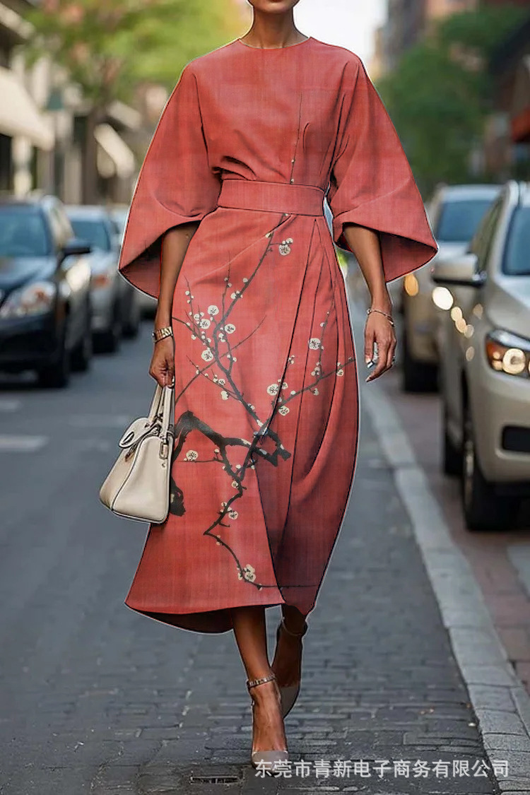 2025 크로스보더 독립 스테이션 아마존 플로럴 오션 이터널 엘레강스 드레스 E439 여성 드레스스토어 가기