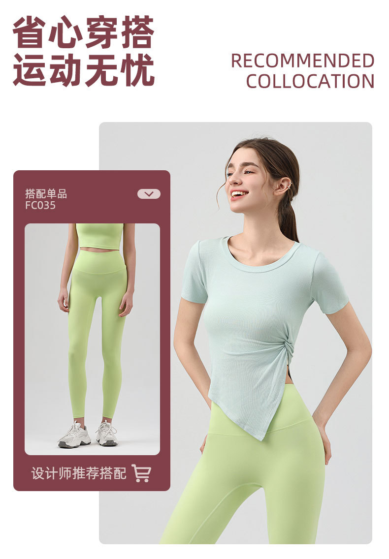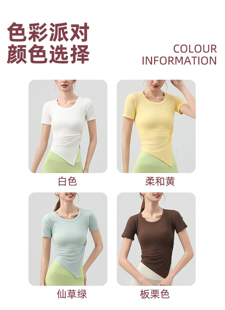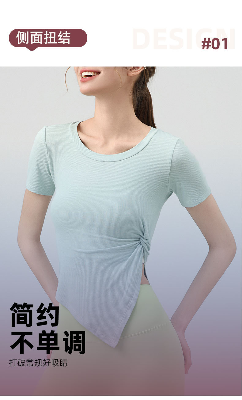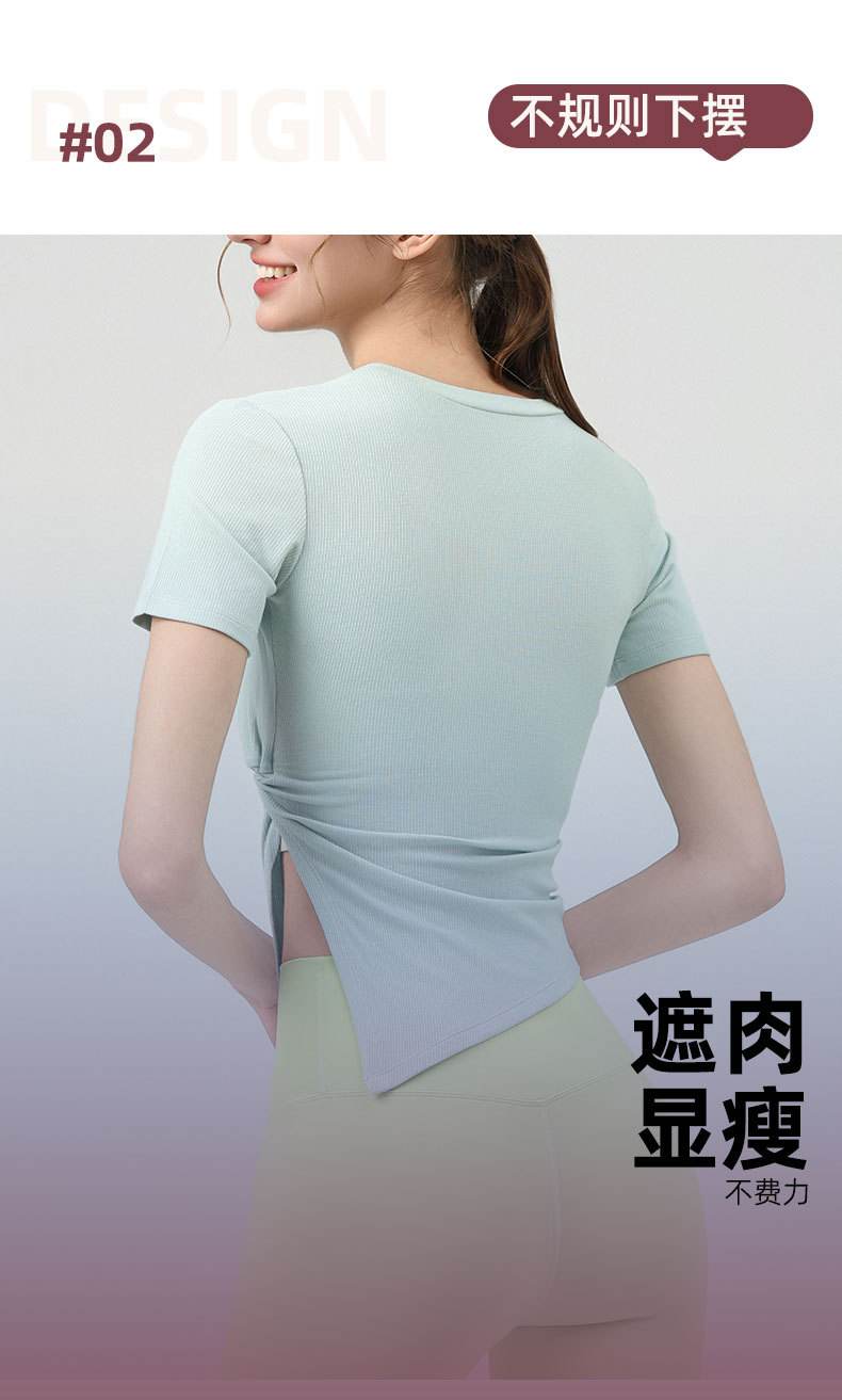 요가 의류 불규칙한 스포츠 반팔 티셔츠 여성용 사이드 스플릿 슬림 핏 슬리밍 피트니스 탑 러닝 트레이닝 블라우스스토어 가기