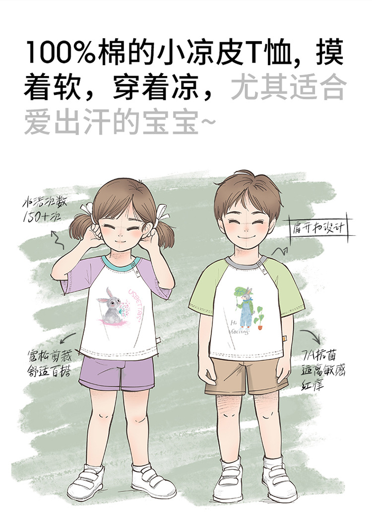 Beptides [7A 항균] 25 개의 새로운 면 재킷 여름 소년 소녀 통기성 멋진 아기 반팔 티셔츠스토어 가기