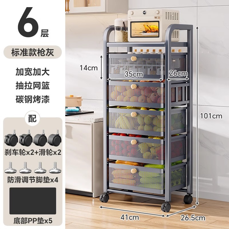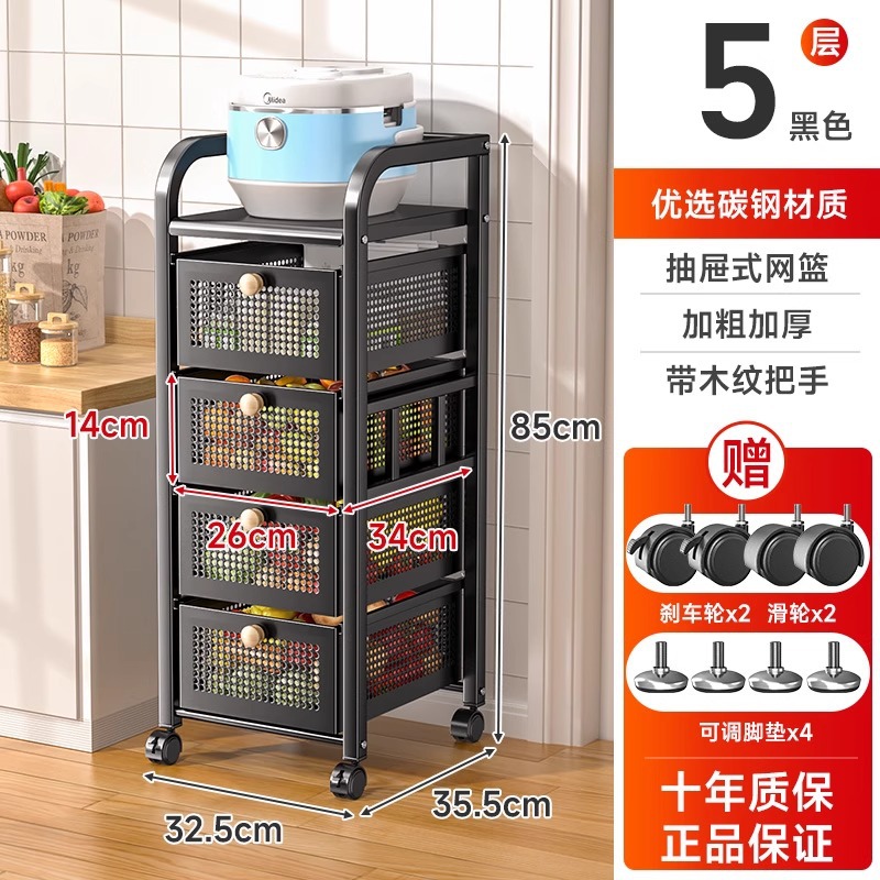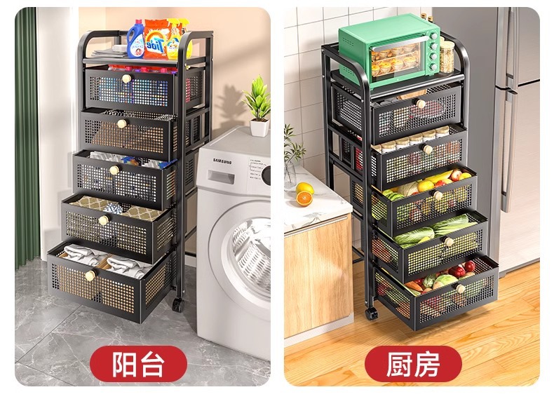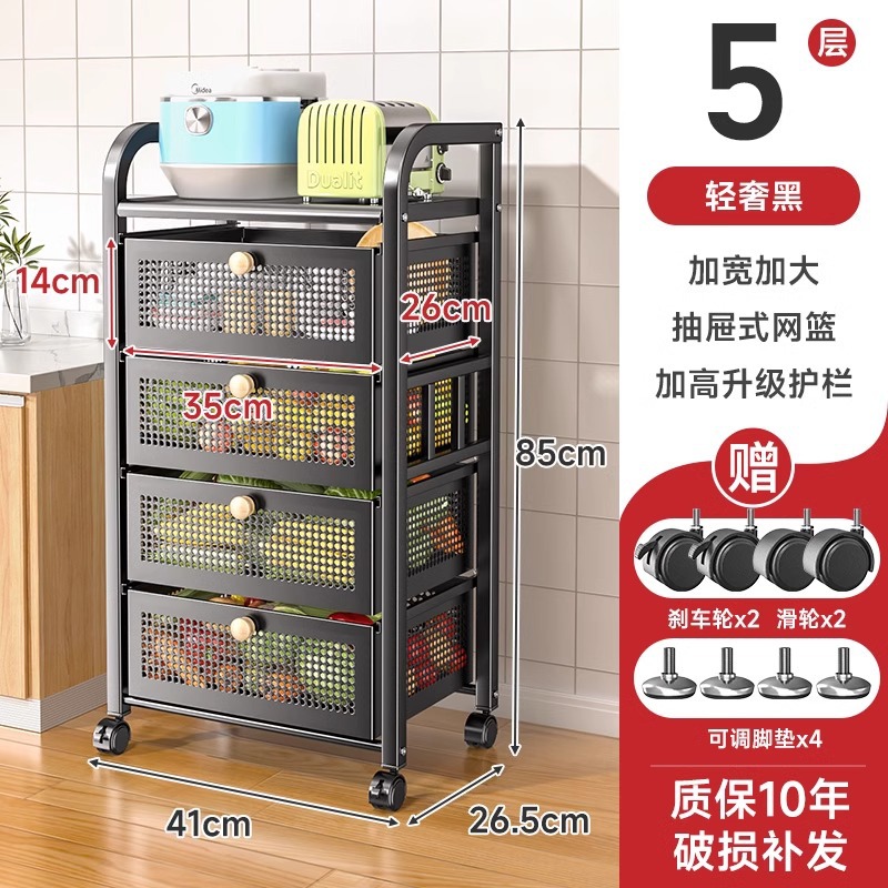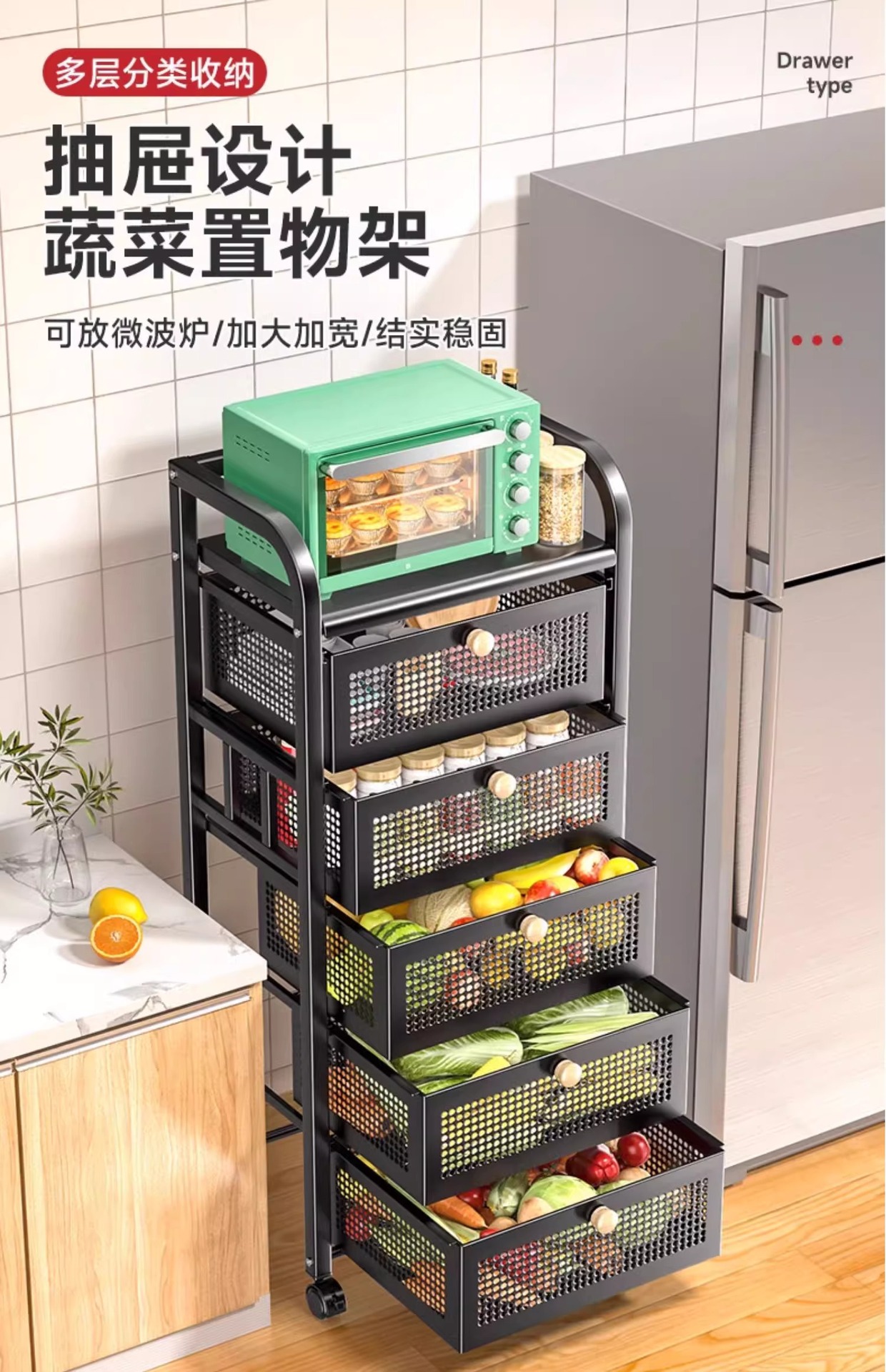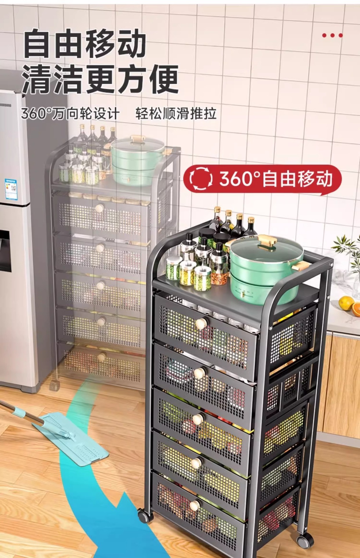 이동식 주방 보관 랙 과일 및 야채 바구니 저장 랙 스낵 서랍 보관 캐비닛을위한 바닥 다층 저장 랙