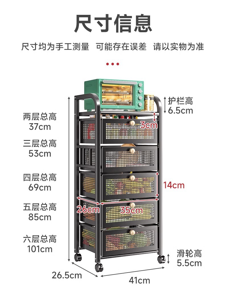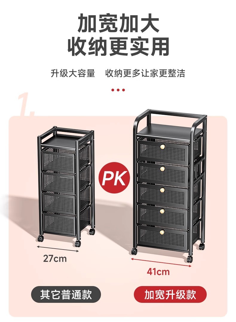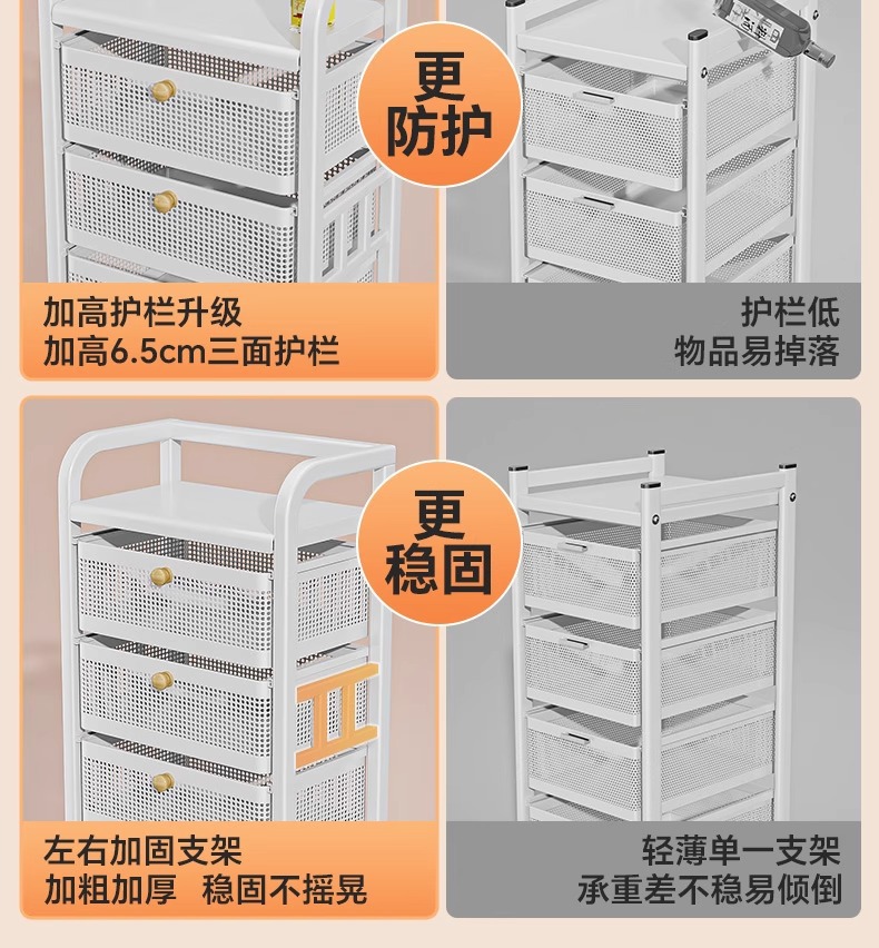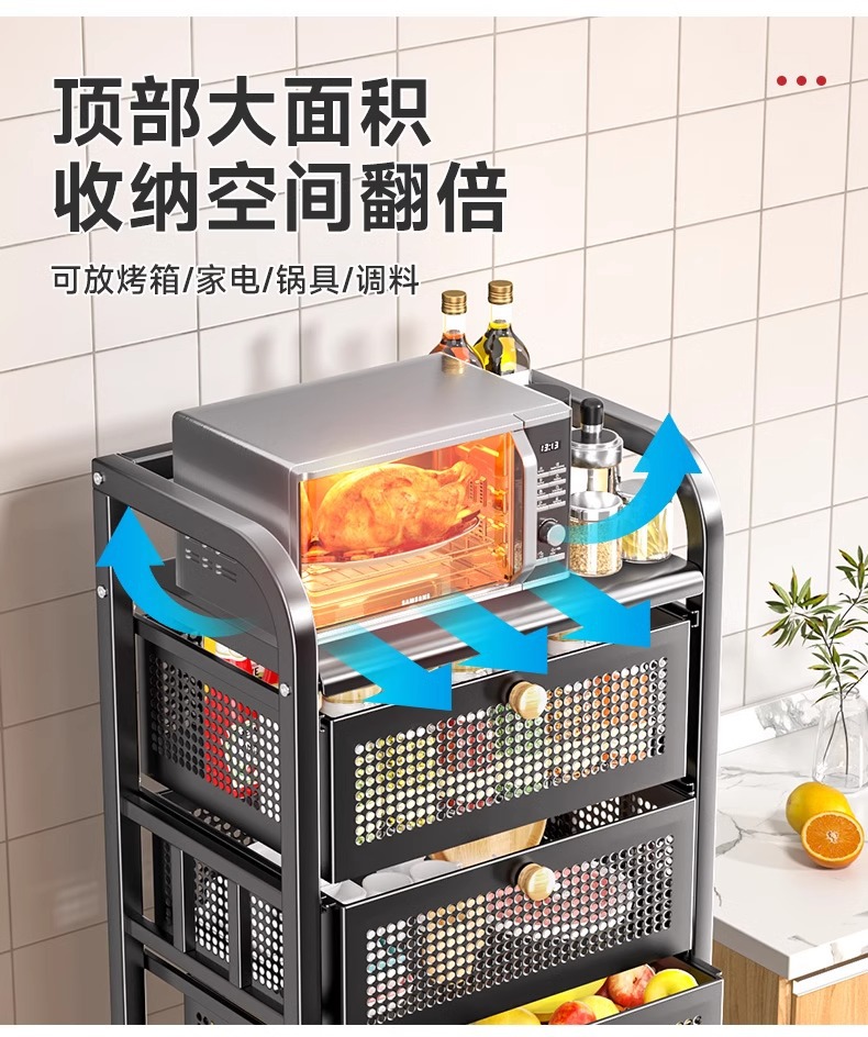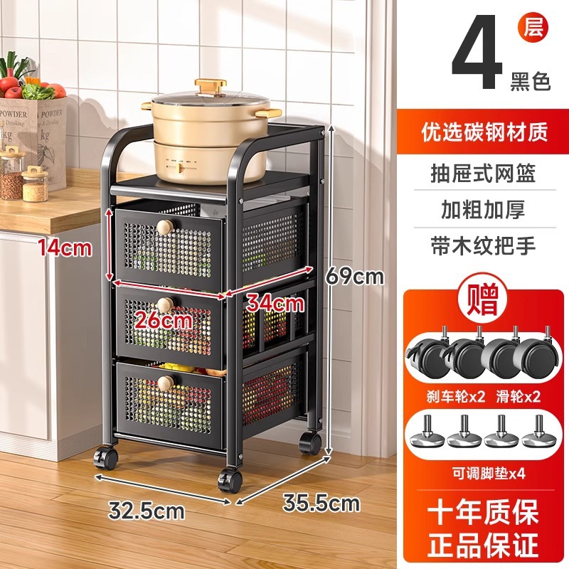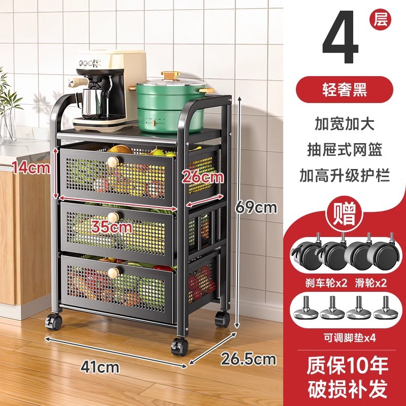 이동식 주방 보관 랙 과일 및 야채 바구니 저장 랙 스낵 서랍 보관 캐비닛을위한 바닥 다층 저장 랙